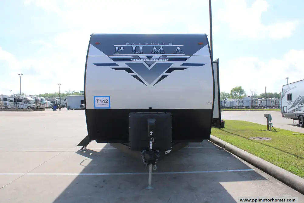 Experience the perfect blend of rugged durability and residential comfort with this 2022 Palomino Puma 28DBFQ. Renowned as a premier family-friendly bunkhouse, the Puma line is celebrated for its solid construction, featuring an aluminum body and a durable rubber roof designed to withstand years of adventure. This 32-foot travel trailer is engineered for seamless outdoor living, boasting an automatic main awning with integrated outside speakers and a fully equipped outdoor kitchen for the ultimate campsite cookout. Setting up is effortless thanks to the electric tongue jack, while the onboard solar panel and outside shower provide the versatility needed for both established parks and off-grid escapes.