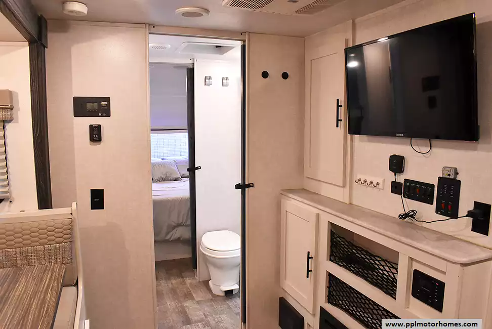 (Floor plan is NOT drawn to scale. Length of vehicle is approximate. Buyer is responsible for verifying actual length. PPL Motor Homes compiled this list of features, specifications, equipment and options as a guide. No representation or warranties, either express or implied, are made as to the accuracy of the information herein. Please verify for yourself all items listed before purchase.)