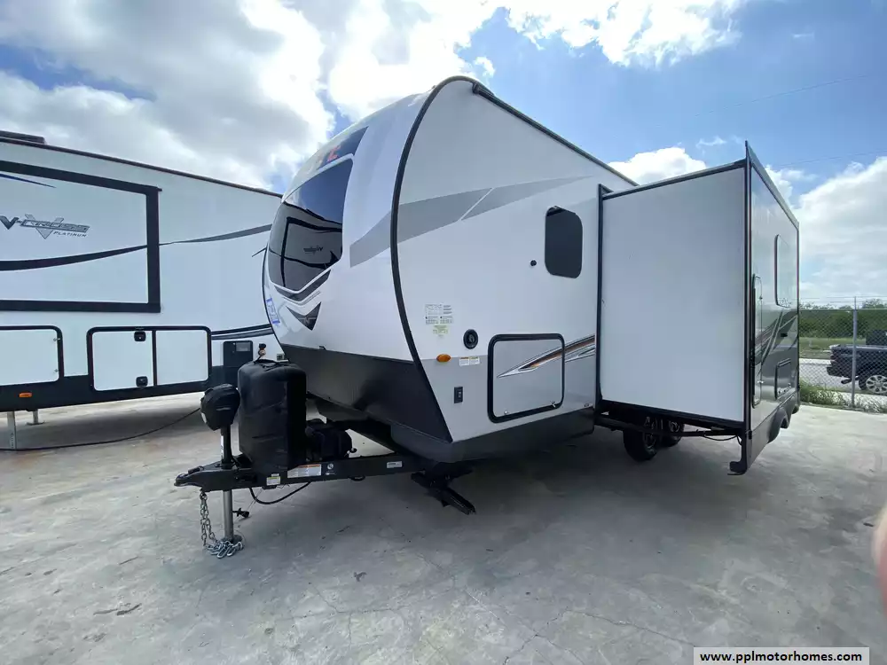 This 2022 Rockwood Mini Lite 2104S has an Electric Tongue Jack, 1 Slide-out, 1 Ducted Air Conditioner, Double Door 12v Magic Chef Refrigerator, Automatic Main Awning, Solar Panel, Outside Speakers, TV, DVD Player, Outdoor Grill, Outside Shower, Microwave, 3 Burner Range, Oven