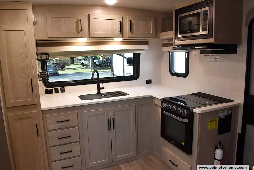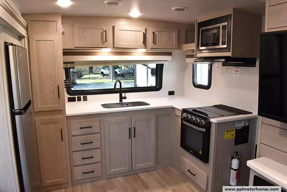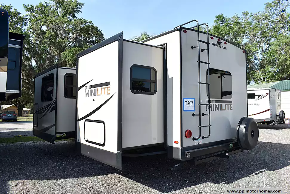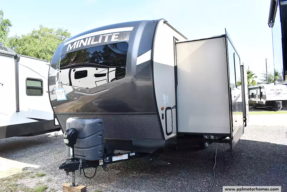 This 2022 Rockwood Mini Lite 2516S has an Electric Tongue Jack, 2 Slide-outs, 1 Ducted Air Conditioner, Double Door 110v Magic Chef Refrigerator, Automatic Main Awning, Solar Panel, Satellite Receiver, Outside Speakers, TV, DVD Player, Fireplace, Microwave, 3 Burner Range, Oven