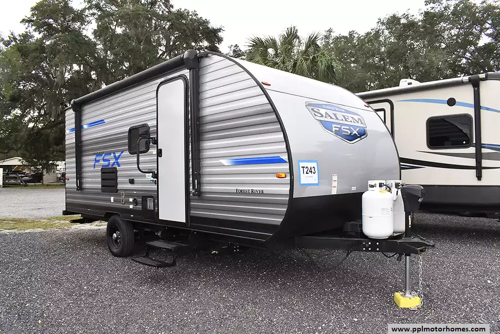 This 2022 Salem Fsx 170SS has an Electric Tongue Jack, 1 Slide-out, 1 Non-Ducted Air Conditioner, Double Door Dometic Refrigerator, Automatic Main Awning And Slide Awning, Satellite Receiver, TV, Microwave