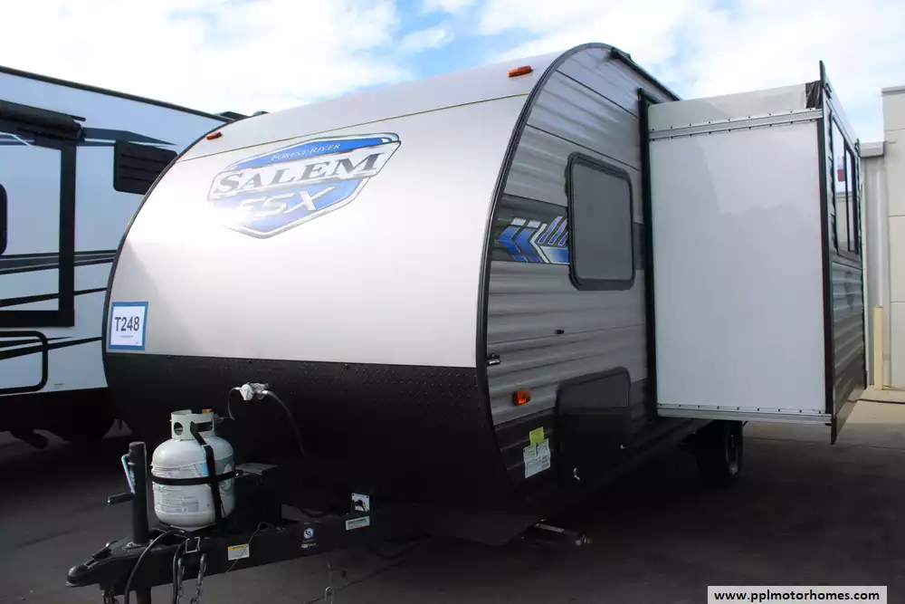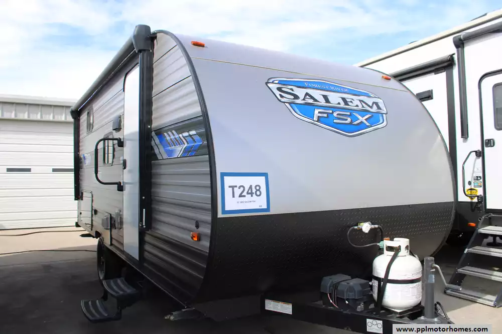 This 2022 Salem FSX 178BHSK has a 1 Slide-Out, 1 Non-Ducted Air Conditioner, Backup Camera (Comes With Monitor), Double Door 12v Everchill Refrigerator (Additional Refrigerator Present), Automatic Main Awning, 190-Watt Solar Panel, Outdoor Grill, Outdoor Kitchen, Outside Shower, USB Ports, Wifi Prep, Microwave, 2 Burner Range, Queen Size Murphy Bed, And More! Get Up And Go In This Tow-Friendly Camper! Ask About PPL's Convenient Financing Options! This Salem FSX Is Eligible For An Environmental Protection And Other Protection Services!