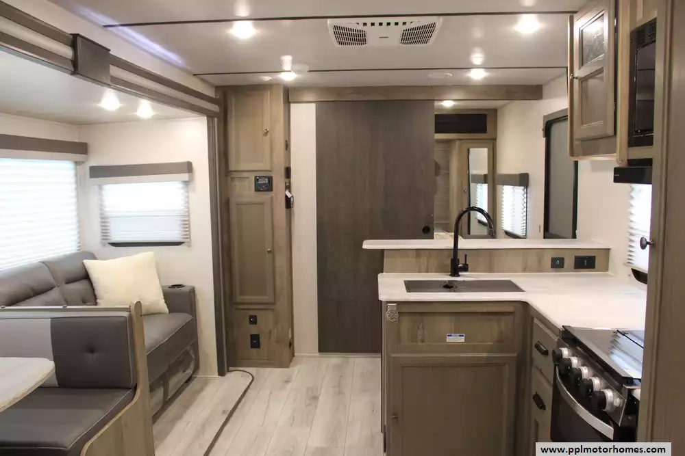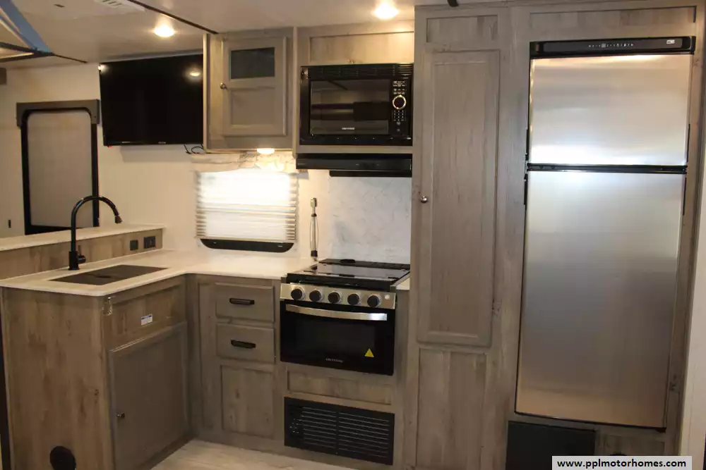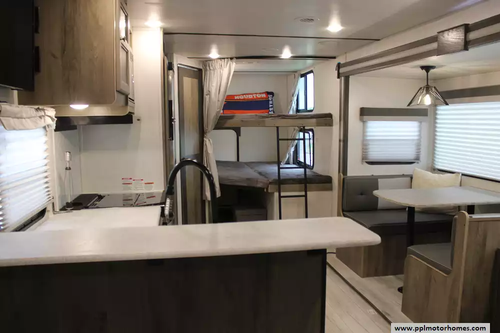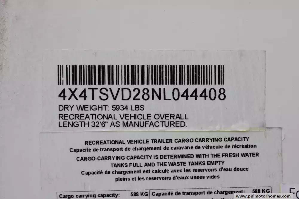 Specs: Length: 32.5 ft., Width: 8 ft., Height: 11.25 ft., Interior Height: 6.83 ft., Payload Capacity: 1,292 lbs., Total Fresh Water Tank Capacity: 40 gal., Total Gray Water Tank Capacity: 40 gal., Total Black Water Tank Capacity: 30 gal., Number of Propane Tanks: 2, Total Propane Tank Capacity: 40 lbs.