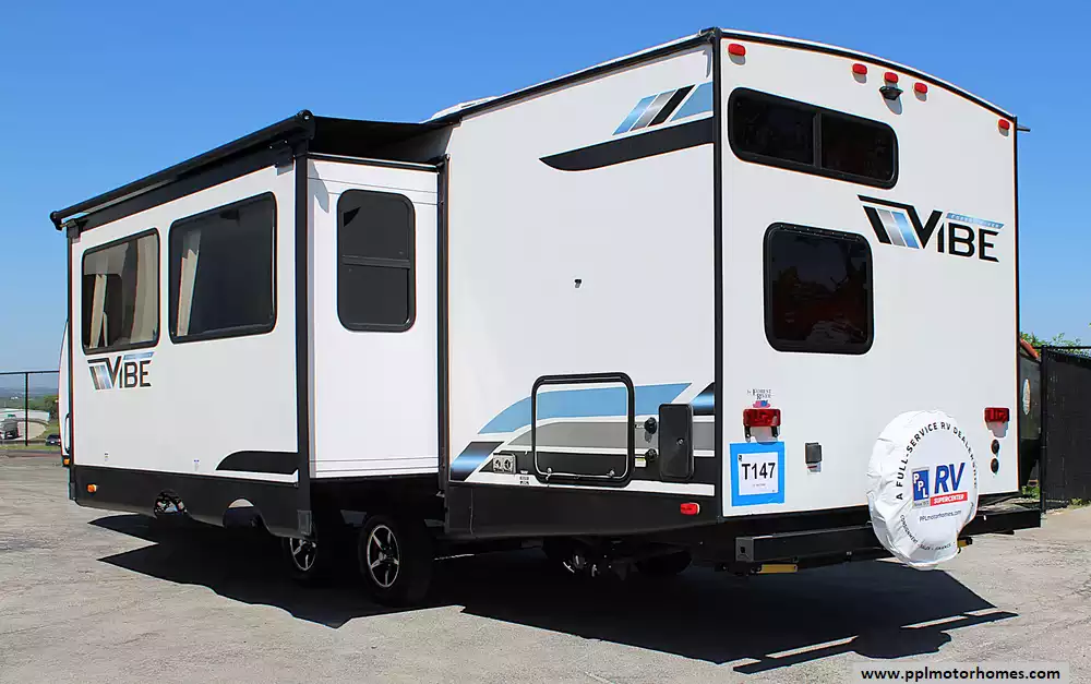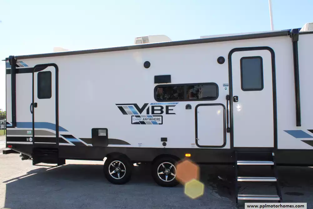 On the exterior, the Vibe 26BH stands out with its modern design and practical features, including a power awning with LED lighting, outside kitchen, pass-through storage, and upgraded aluminum wheels. You'll also appreciate features like ducted A/C, furnace, water heater, and stabilizer jacks for a smooth camping experience. Built for both comfort and durability, this 2022 Vibe 26BH is ready to make memories with the whole family--don't miss your chance to own a versatile and well-equipped travel trailer at a great value.