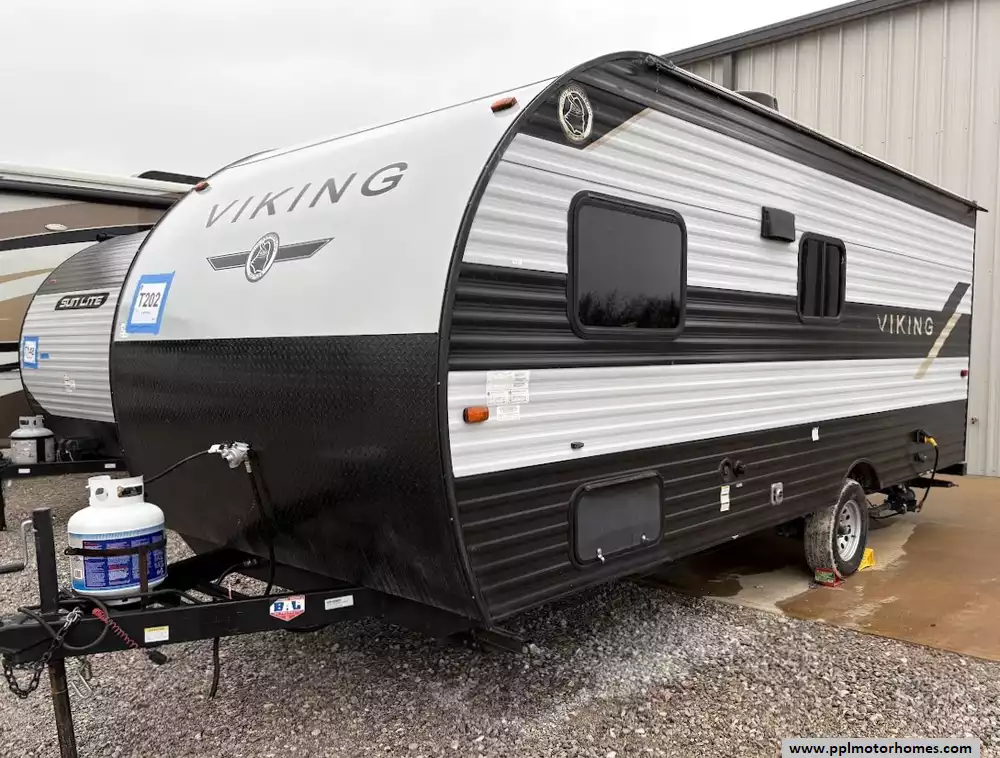 Experience versatile, family-friendly adventures with the 2022 Viking 182DBU, a travel trailer designed for those who value both comfort and effortless towing. Built on a sturdy Norco NXG chassis with a lightweight aluminum body and an aerodynamic front profile, this 23-foot trailer is famous for its "camping made easy" philosophy. The 182DBU model is highly regarded for its innovative floor plan, featuring a spacious U-shaped dinette that easily converts into a cozy Murphy bed. With additional double-over-double rear bunks, this trailer offers impressive sleeping capacity and living space usually reserved for much larger units.