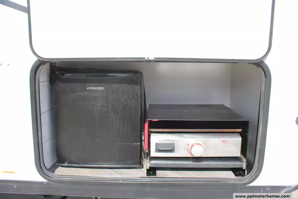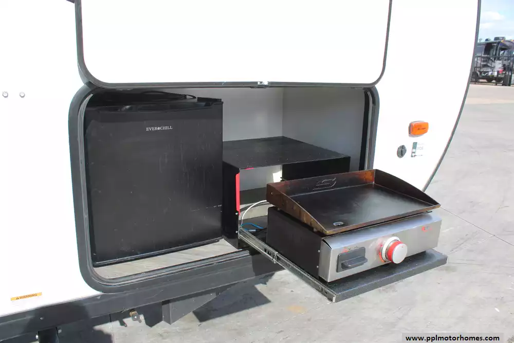 This 2022 Wildwood Fsx Toy Hauler 270RTK gives you enough length and capacity to haul gear while still being manageable in size and weight for many towing rigs. Features Include...Electric Tongue Jack, Double Door Residential Everchill Refrigerator, Outside Speakers, TV, Outdoor Kitchen, Outside Shower, Microwave, 3 Burner Range, and Oven.