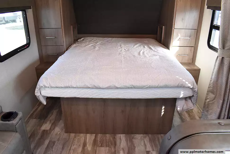 Queen bed with under-bed storage for extra space