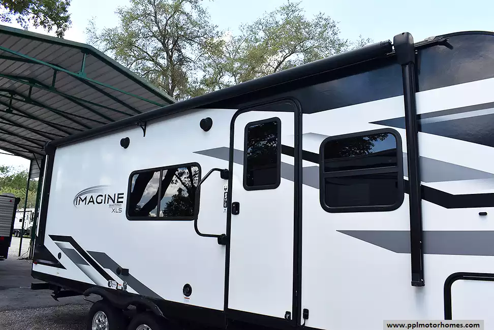 This 2022 Imagine 22MLE has an Electric Tongue Jack, 1 Slide-out, 1 Ducted Air Conditioner, Double Door Gas/110v Dometic Refrigerator, Automatic Main Awning And Door Awning, Solar Panel, Satellite Receiver, Outside Speakers, TV, Microwave, Oven