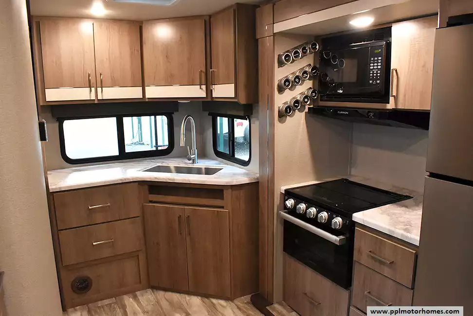 This well-appointed unit seamlessly blends high-end comfort with practical design, making it ideal for both weekend getaways and extended adventures.