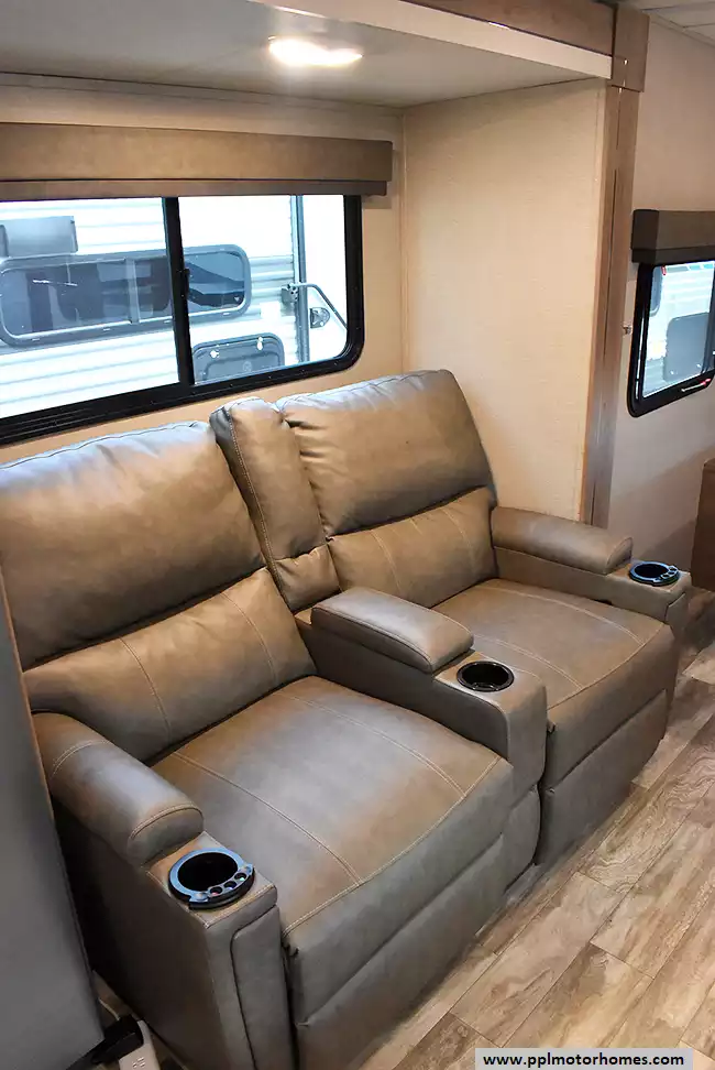 Dual theater seats with built-in heat and massage Cozy relaxation at the touch of a button