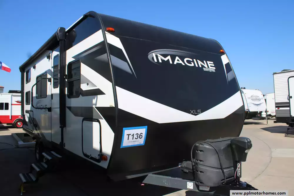 The 2022 Grand Design Imagine XLS 21BHE is a lightweight, family-friendly travel trailer engineered for both comfort and practicality. It sleeps up to 6 via a Murphy queen bed up front and double-size bunks in the rear. The booth dinette had a larger table installed so the ability to convert into a sleeper is minimal. The trailer offers ample tank capacities, a full kitchen with a 10 cu ft refrigerator, three-burner range, walk-in shower, and many modern amenities including a 15' electric awning with LED lighting, enclosed heated underbelly, "Haloview" rear and side cameras, tire-pressure monitoring system, and exterior kitchen. Overall, it's a versatile rig that balances sleeping room, amenities, and towability for families or groups who want comfort on the go. This Imagine also has a brand-new roof! Low maintenance, well-kept, and made for adventures! What more could you want? Make this 2022 Grand Design Imagine XLS bunk-model your new getaway!