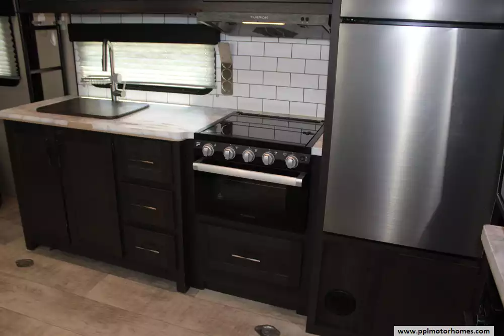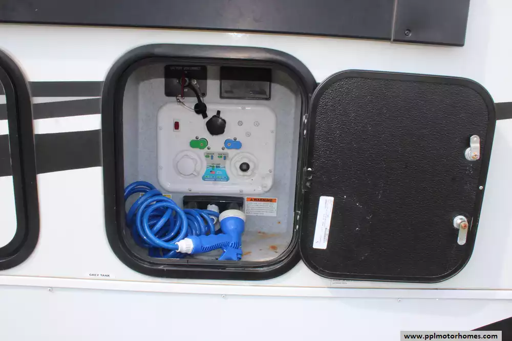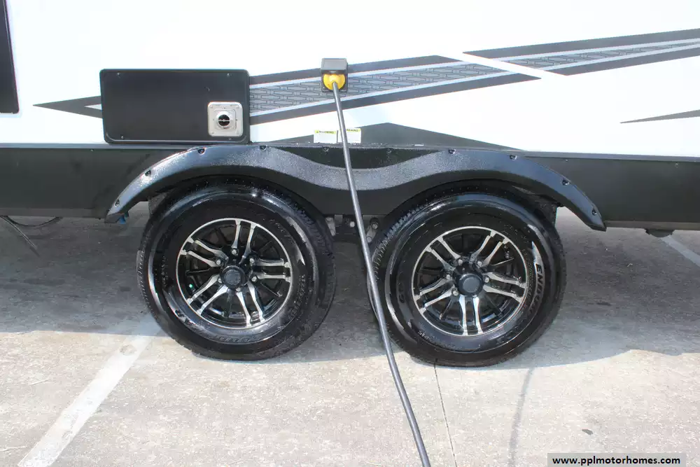Specs: Length: 26.92 ft., Width: 8.42 ft., Height: 12.08 ft., Payload Capacity: 3,595 lbs., Total Fresh Water Tank Capacity: 100 gal., Total Gray Water Tank Capacity: 74 gal., Total Black Water Tank Capacity: 39 gal., Number of Propane Tanks: 2, Total Propane Tank Capacity: 40 lbs.