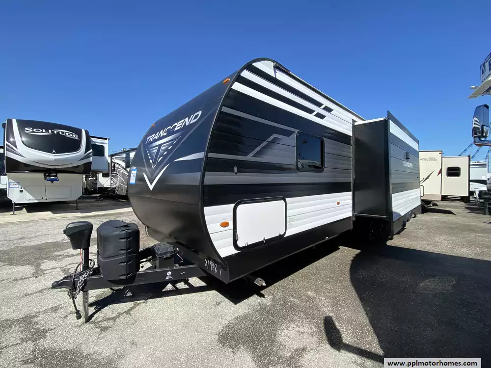 This 2022 Transcend Xplor 260RB has an Electric Tongue Jack, 1 Slide-out, 1 Ducted Air Conditioner, Double Door Furrion Refrigerator, Automatic Main Awning, Solar Panel, Outside Speakers, TV, Microwave, 3 Burner Range, Oven