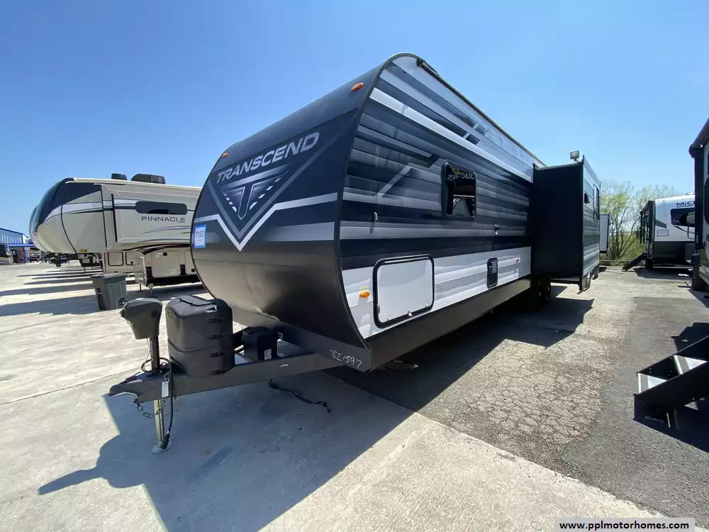 This 2022 Transcend Xplor 297QB has an Electric Tongue Jack, 1 Slide-out, 2 Ducted Air Conditioners, Double Door 12v Furrion Refrigerator (Additional Refrigerator Present), Automatic Main Awning, Solar Panel, Outside Speakers, TV, Outdoor Grill, Microwave, 3 Burner Range, Oven