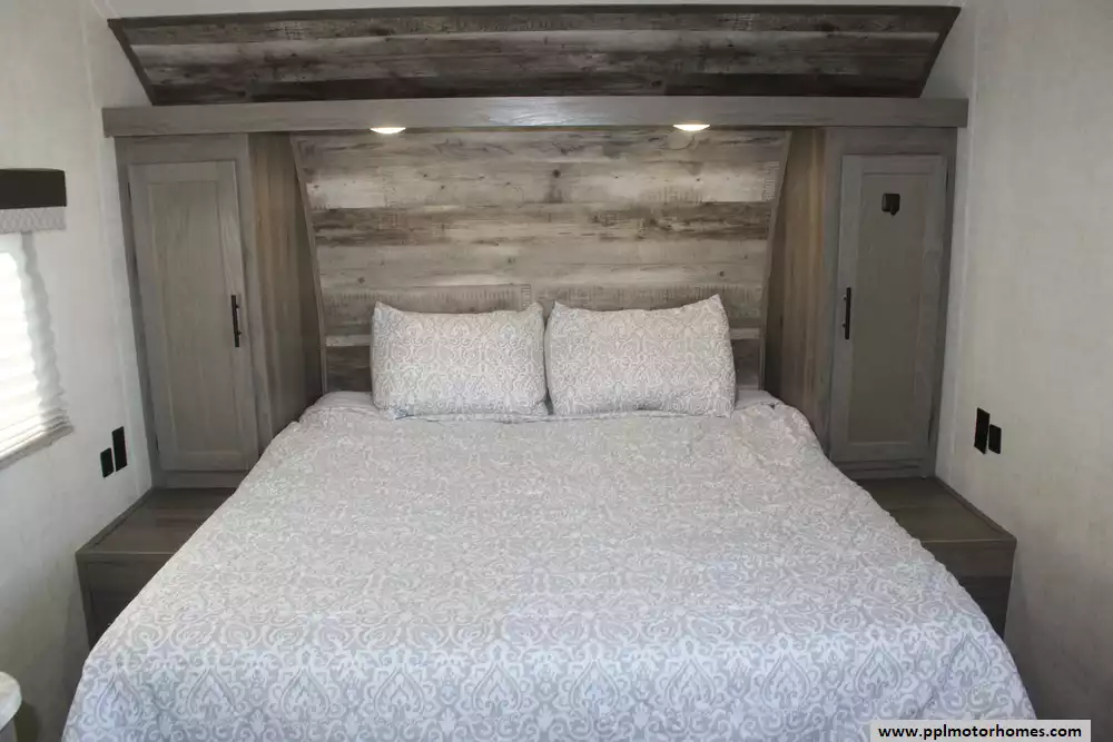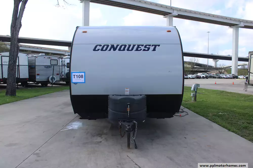 The interior is thoughtfully designed to maximize comfort and convenience during your weekend getaways or extended trips. The galley kitchen comes fully equipped with a two-burner range, a microwave, and a spacious double-door 110v/12v Dometic refrigerator to keep your supplies fresh. You will stay cool even on the warmest afternoons thanks to the efficient non-ducted air conditioner, while the automatic main awning allows you to expand your living space outdoors at the touch of a button. This Conquest 248BH offers a professional, modern camping experience that is ready for your next adventure.
