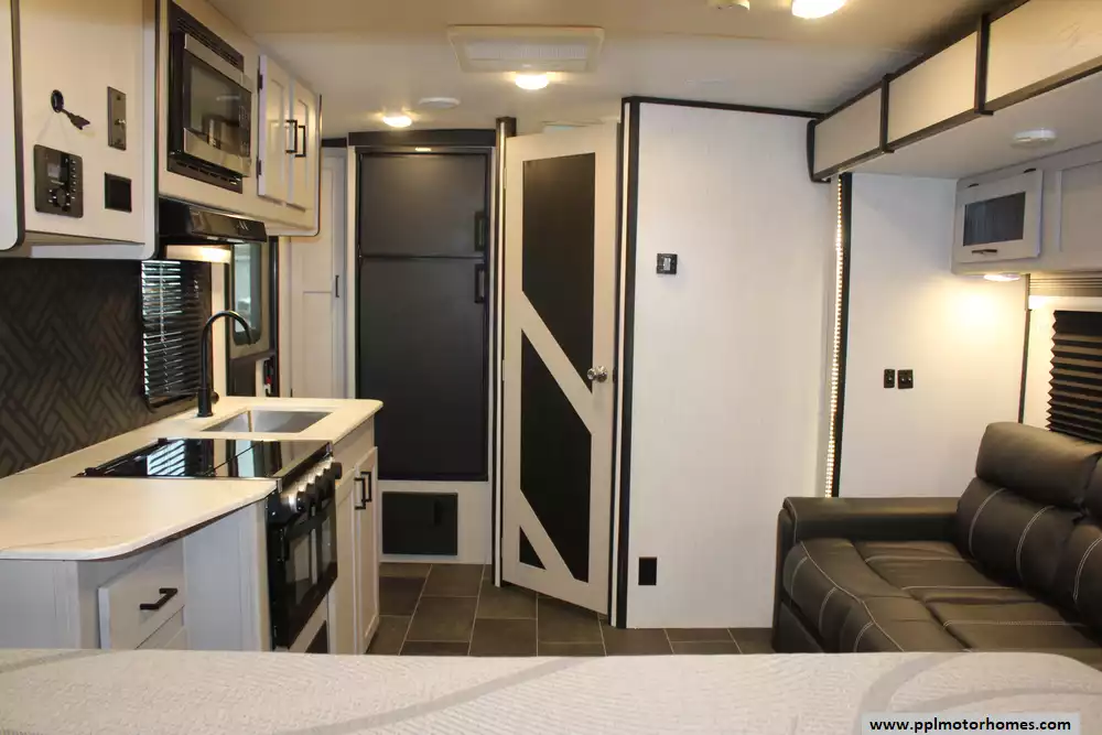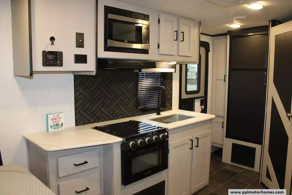 Specs: Length: 21.9 ft., Width: 8.5 ft., Height: 11.5 ft., Total Fresh Water Tank Capacity: 45 gal., Total Gray Water Tank Capacity: 40 gal., Total Black Water Tank Capacity: 40 gal., Total Number of Propane Tanks: 2, Propane Tank Capacity: 40 lbs.