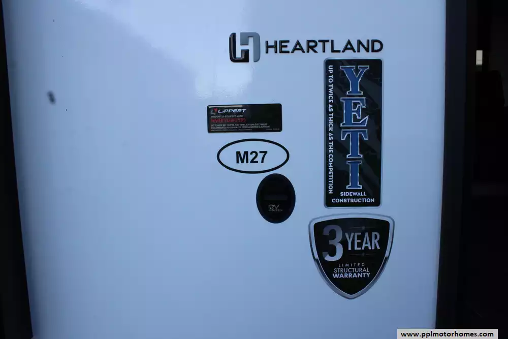 The Heartland Mallard M-27 is a compact yet well-equipped 2022 travel trailer built for comfortable, convenient camping for up to six people. At about 30.3 feet long with a single slide-out, the Mallard M-27 balances manageability and livability, it includes a front private bedroom with a king bed, a rear living area with lounge chairs plus a convertible sofa/dinette for additional sleeping, and a full kitchen with a double-door refrigerator and a three-burner cooktop. It also offers a full bath, a 17-foot power awning for outdoor shade, and pass-through storage that helps with packing for longer trips. With dual-entry doors, forced-air underbelly heating, standard air conditioning and ample fresh/grey/black water tank capacities (45 gal fresh, 40 gal grey, 40 gal black), it's a trailer that aims to deliver practicality and comfort whether you're weekend-camping or traveling longer distances.
