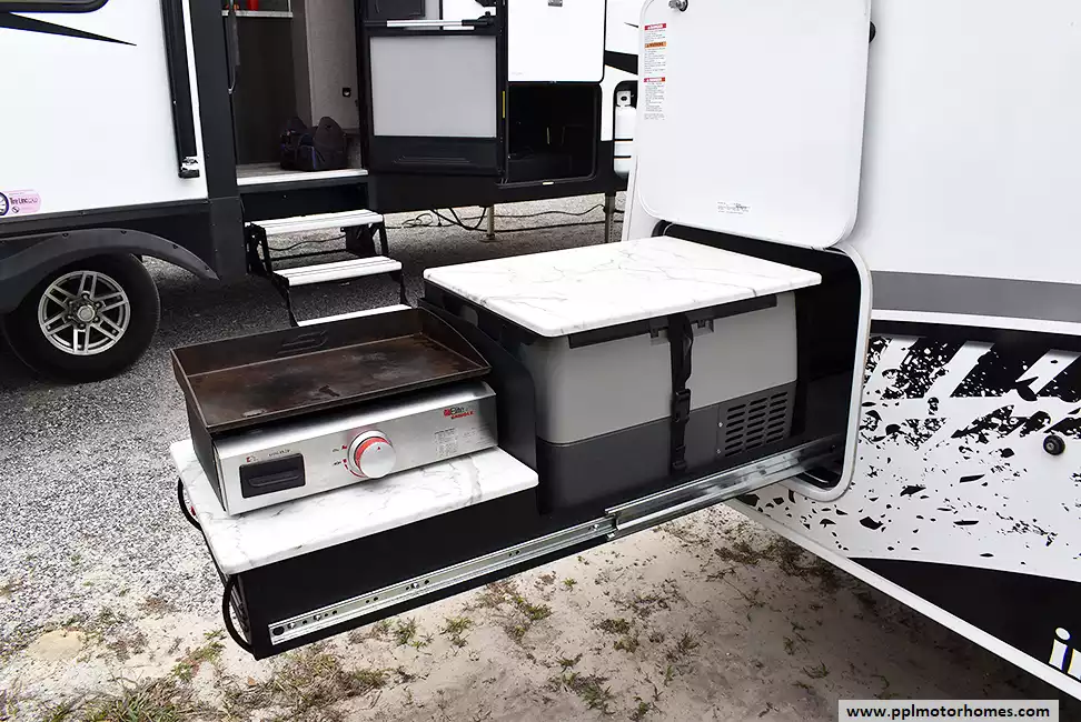 This 2022 Intech Terra Oasis ROVER has an Electric Tongue Jack, 1 Ducted Air Conditioner, Double Door 12v Norcold Refrigerator (Additional Refrigerator Present), Automatic Main Awning, Satellite Receiver, 2 TVs, Outdoor Grill, Convection Microwave, 2 Burner Range, all aluminum frame and all aluminum side wall cage construction with fiberglass shell