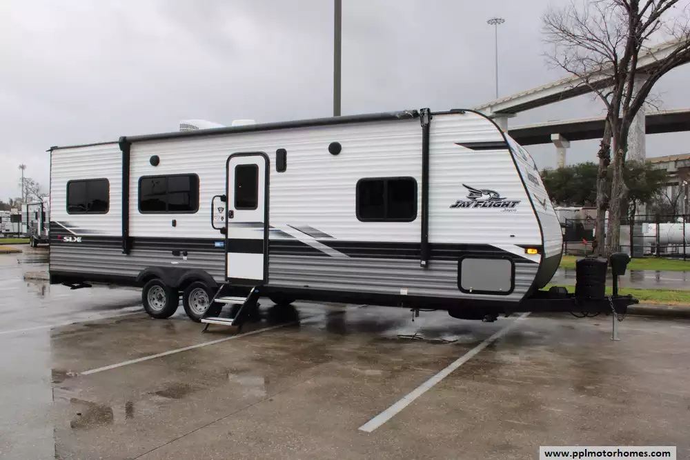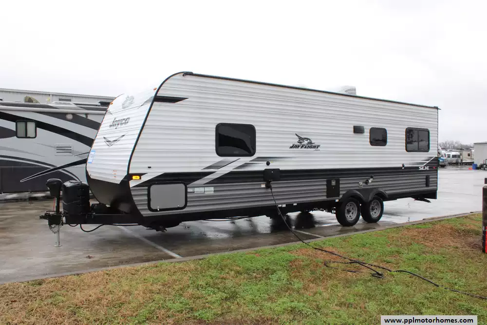 This 2022 Jay Flight Slx 265TH is a versatile and well-designed toy hauler travel trailer known for its reliability and quality craftsmanship.This model is an excellent choice for outdoor enthusiasts who need a combination of comfortable living space and a functional garage area to transport motorcycles,ATVs,or other adventure gear.Features Include... Electric Tongue Jack, 1 Ducted Air Conditioner, Double Door Gas/110v Norcold Refrigerator, Automatic Main Awning, Outside Speakers,Outdoor Grill,Floating Patio,MorRyde Steps,Outside Shower, Microwave,3 Burner Range,and Oven.This lightweight,durable,and affordable toy hauler is ideal for adventure seekers looking for a compact but capable trailer.