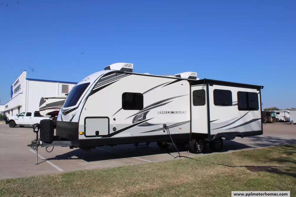 This 2022 White Hawk 27RK is designed for folks who want more comfort, space, and durability without stepping up to a huge fifth wheel. Amenities Include...Electric Tongue Jack, 1 Slide-out, 1 Non-Ducted And 1 Ducted Air Conditioner, Double Door Furrion Refrigerator, Automatic Main Awning And Slide Awning, Outside Speakers, TV, Outdoor Kitchen, Outside Shower, Fireplace, Microwave, 3 Burner Range, and Oven.