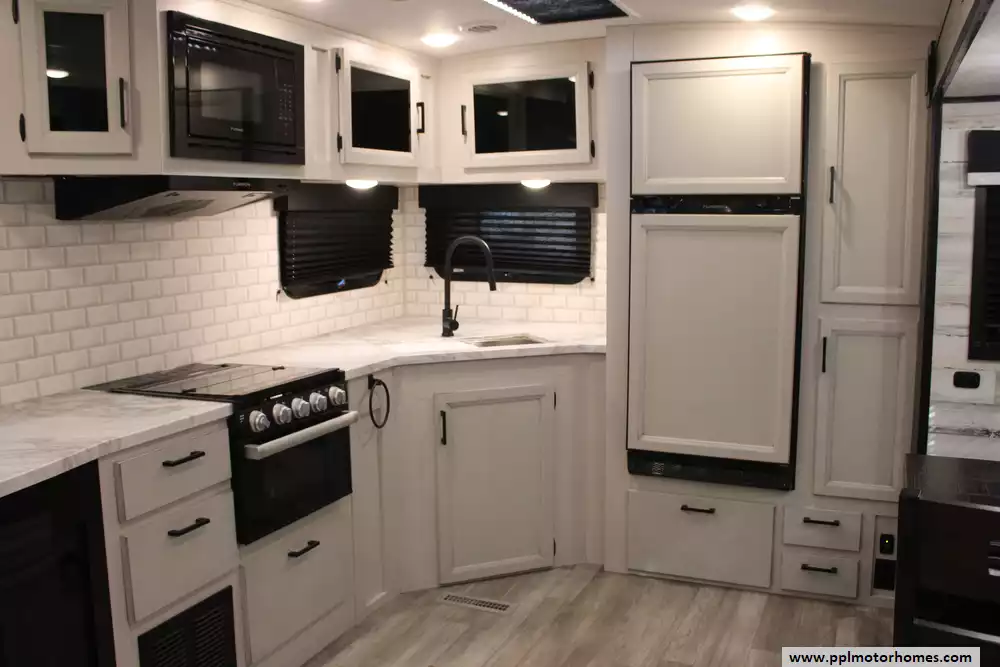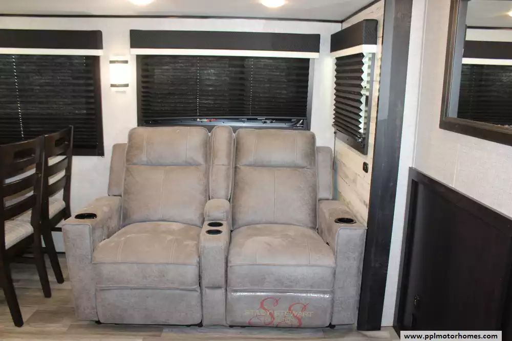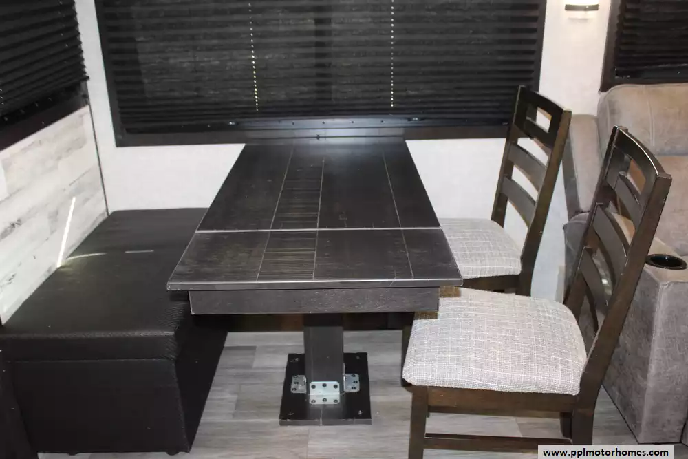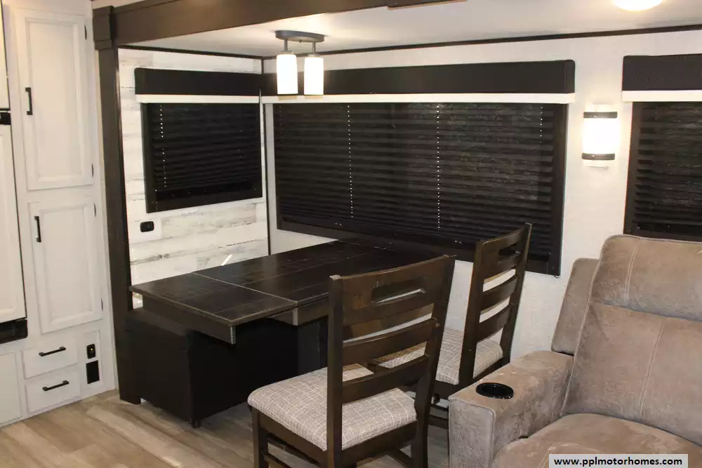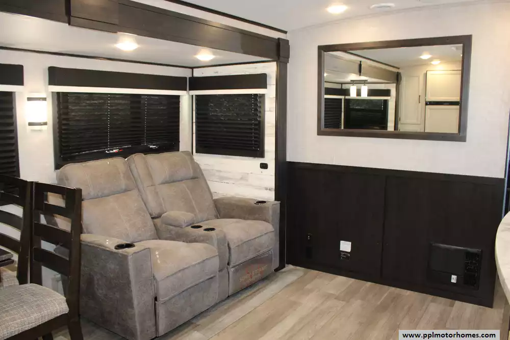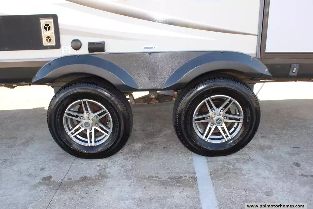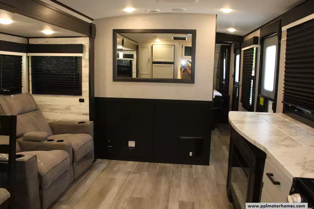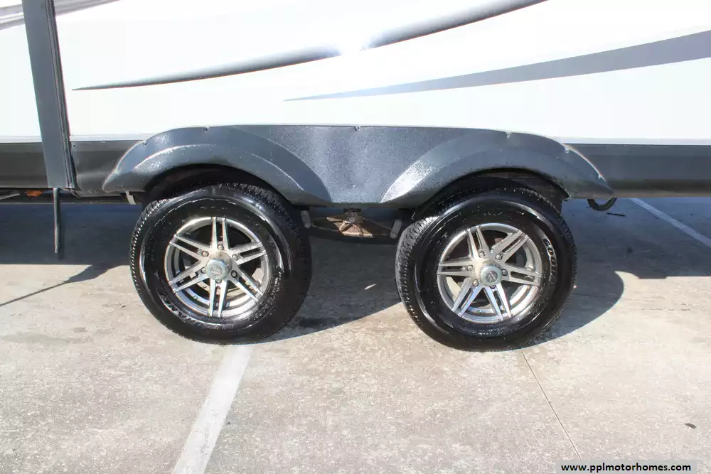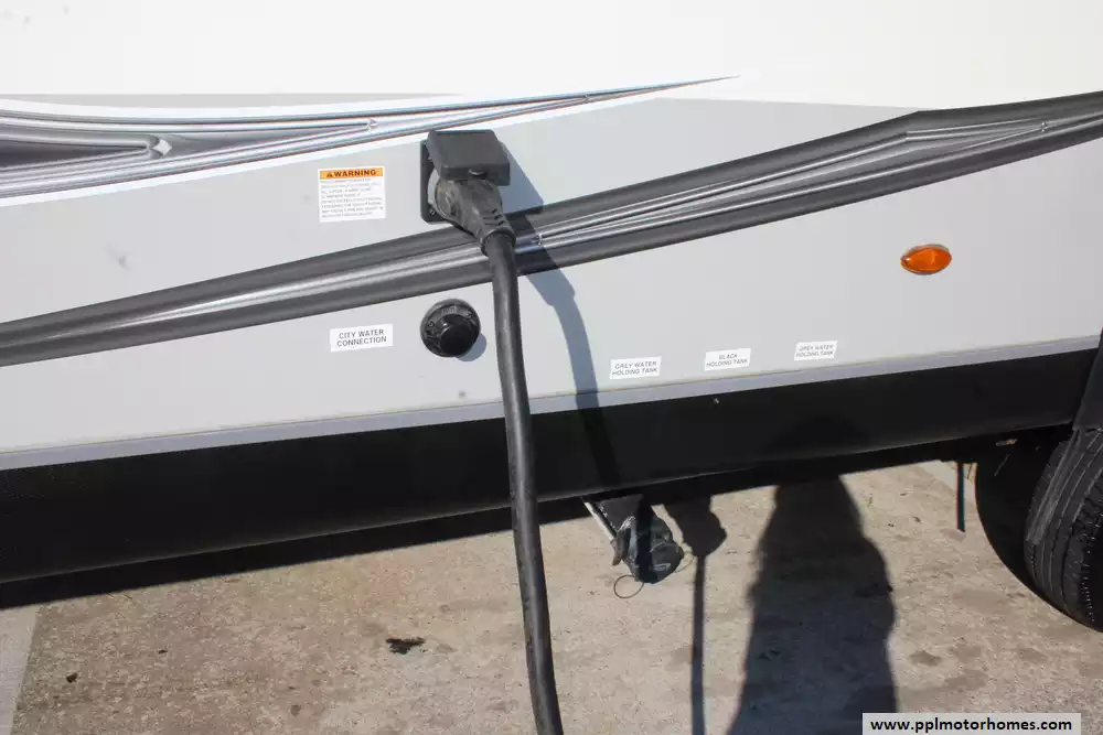 Specs: Length: 32.10 ft., Width: 8 ft., Height: 11.3 ft., Interior Height: 6.9 ft., Total Fresh Water Tank Capacity: 55 gal., Total Gray Water Tank Capacity: 61 gal., Total Black Water Tank Capacity: 30.5 gal., Number of Propane Tanks: 2, Total Propane Tank Capacity: 60 lbs.