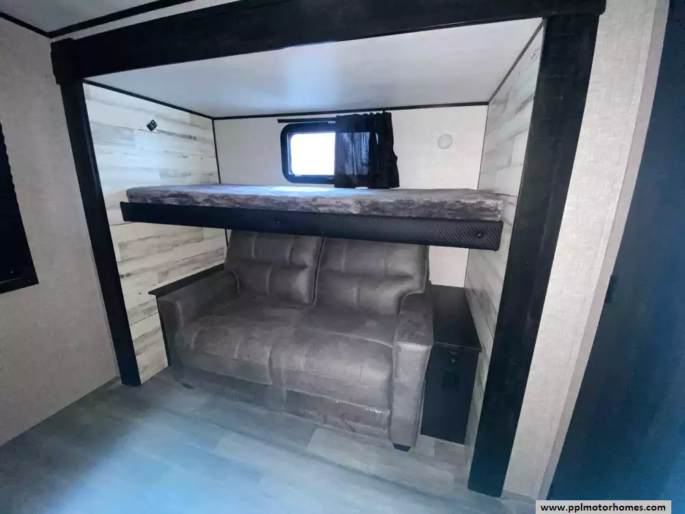 Experience the pinnacle of lightweight luxury with this 2022 Jayco White Hawk 32BH. Renowned for its superior construction, this 38-foot travel trailer features Jaycos Magnum Truss Roof System and Stronghold VBL vacuum-bonded fiberglass walls for industry-leading durability. The expansive interior, widened by two slide-outs, offers a spacious bath-and-a-half floor plan and a private bunkhouse perfect for families. Dual ducted air conditioners keep the cabin comfortable while you enjoy the modern kitchen equipped with a microwave, three-burner range, oven, and a double door 12v Furrion refrigerator. The living area serves as a true home away from home, featuring a large TV and a cozy electric fireplace for relaxing evenings.