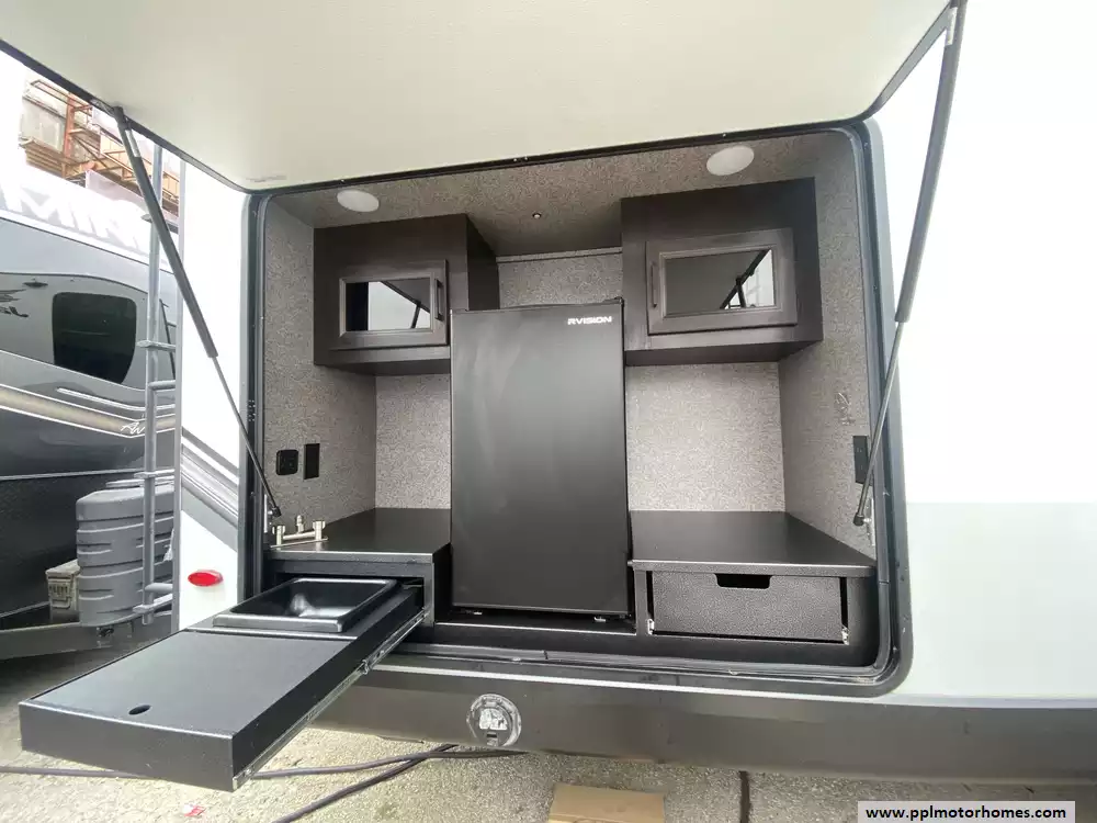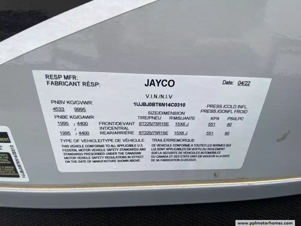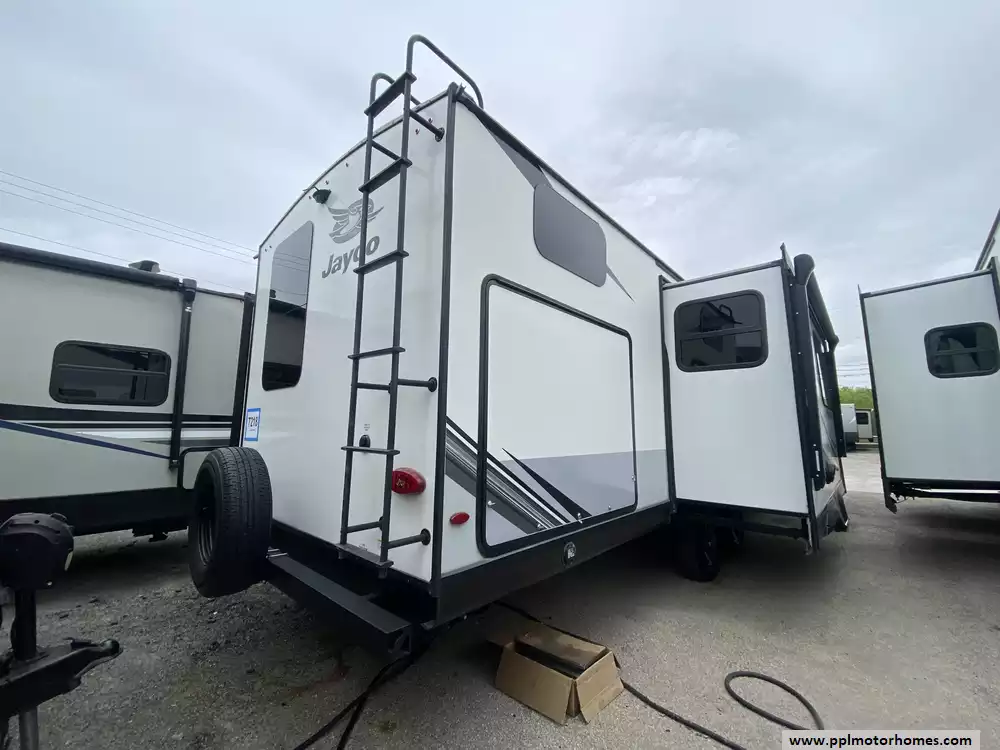 Built for those who love the outdoors, this White Hawk comes ready for adventure with an integrated solar panel and a high-performance TPO roof. The exterior is an entertainers dream, boasting an automatic main awning, outside speakers, and a full outdoor kitchen with a grill and outside shower. Setup is effortless thanks to the electric tongue jack, allowing you more time to enjoy your destination. With its aerodynamic design and high-end finishes, this travel trailer perfectly balances Jaycos reputation for quality with the modern conveniences your family deserves.