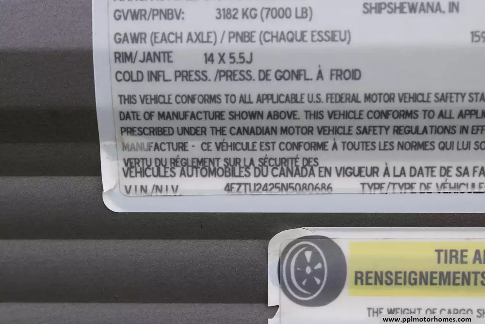 Specs: Length: 27.42 ft., Width: 8 ft., Height: 10.67 ft., Interior Height: 6.5 ft. Payload Capacity: 1,850 lbs., Total Fresh Water Tank Capacity: 45 gal., Total Gray Water Tank Capacity: 64 gal., Total Black Water Tank Capacity: 32 gal., Number of Propane Tanks: 2, Total Propane Tank Capacity: 40 lbs.