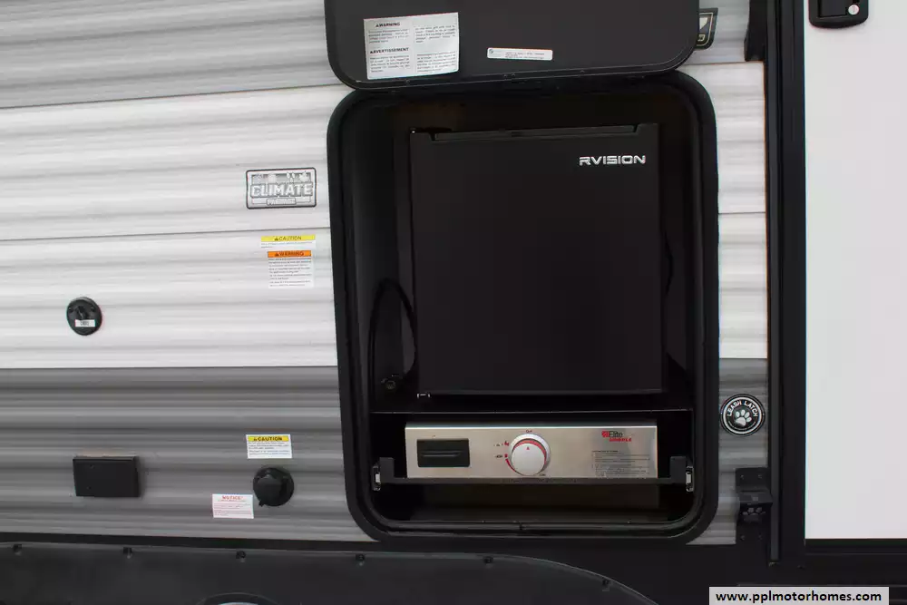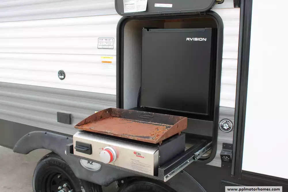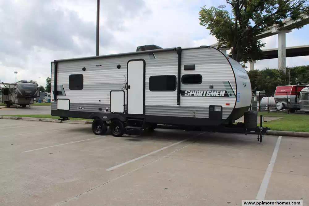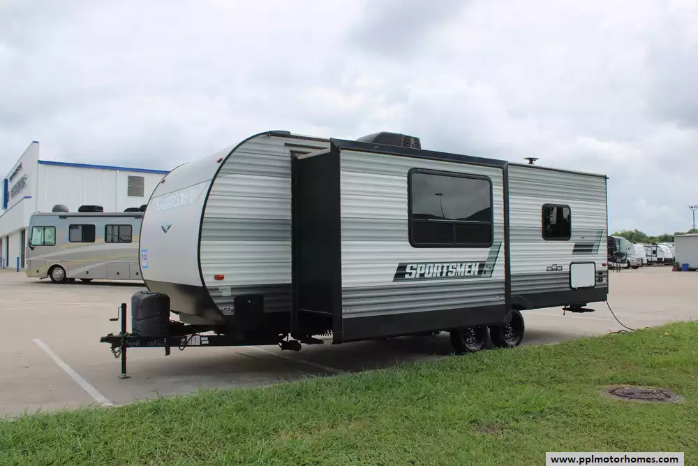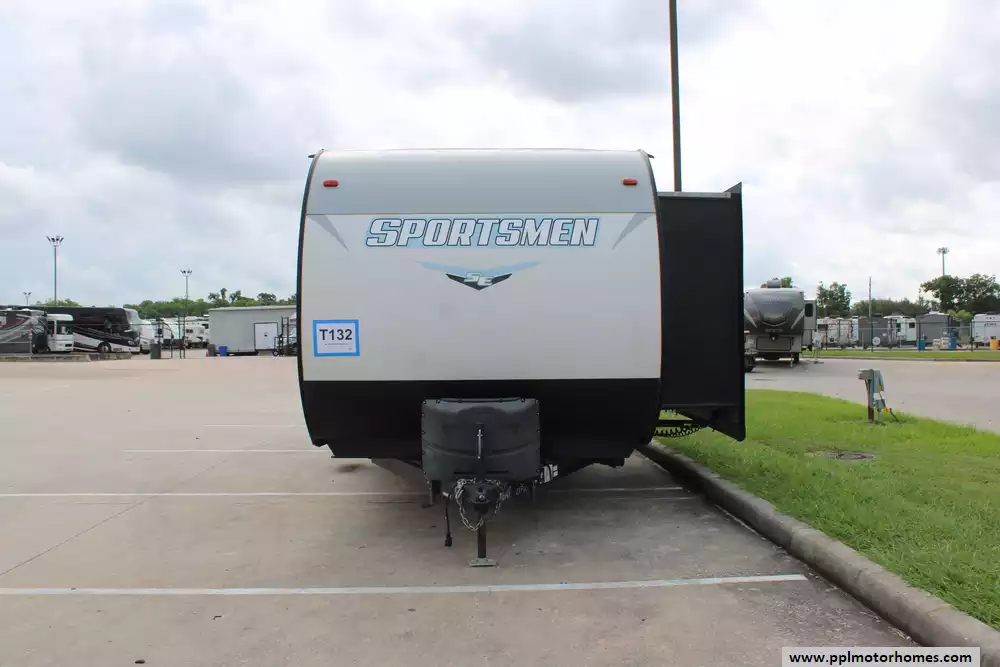 This 2022 Sportsmen SE 231FKKSE a front-kitchen travel trailer geared for couples or small families seeking lightweight versatility and comfort. Features Include...1 Slide-out, 1 Ducted Air Conditioner, Double Door Residential Furrion Refrigerator, Automatic Main Awning, Outside Speakers, TV, DVD Player, Outdoor Kitchen, Outside Shower, Microwave, 3 Burner Range, and Oven.
