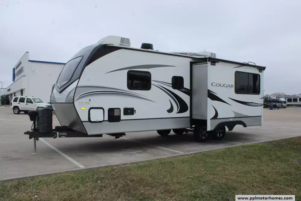 This 2022 Cougar by Keystone 25RDS is a mid-size, family-friendly RV designed for comfortable camping trips, weekend getaways, or longer travels. Amenities Include...Electric Tongue Jack, 1 Slide-out, 2 Ducted Air Conditioners, Double Door Gas/110v Norcold Refrigerator, Automatic Main Awning And Slide Awning, Solar Panel, Satellite Dish, Outside Speakers, TV, DVD Player, Outside Shower, Fireplace, Microwave, 3 Burner Range, and Oven.