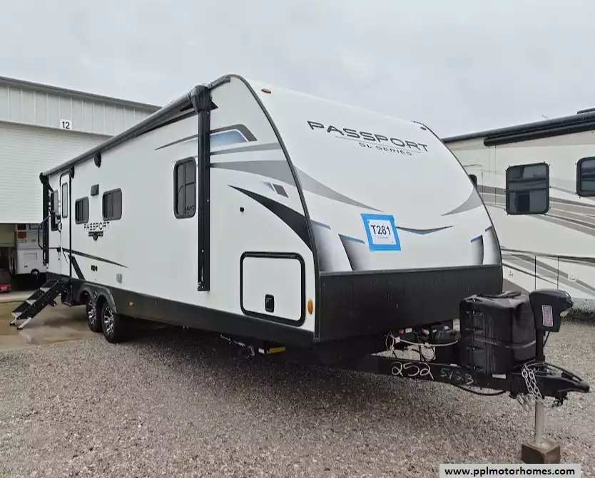 This 2022 Passport 252RD sleep up to 5 people, has an Electric Tongue Jack, 1 Slide-out, 1 Ducted Air Conditioner, Double Door 110v Norcold Refrigerator, Automatic Main Awning, Solar Panel, Outside Speakers, 3 TVs, Outside Shower, Microwave, 3 Burner Range, Oven