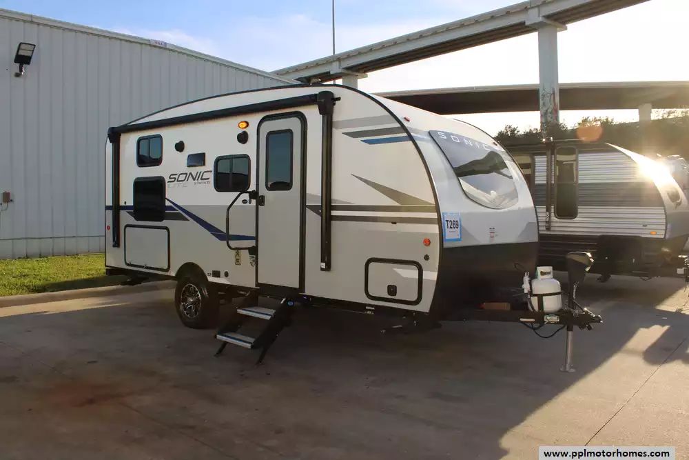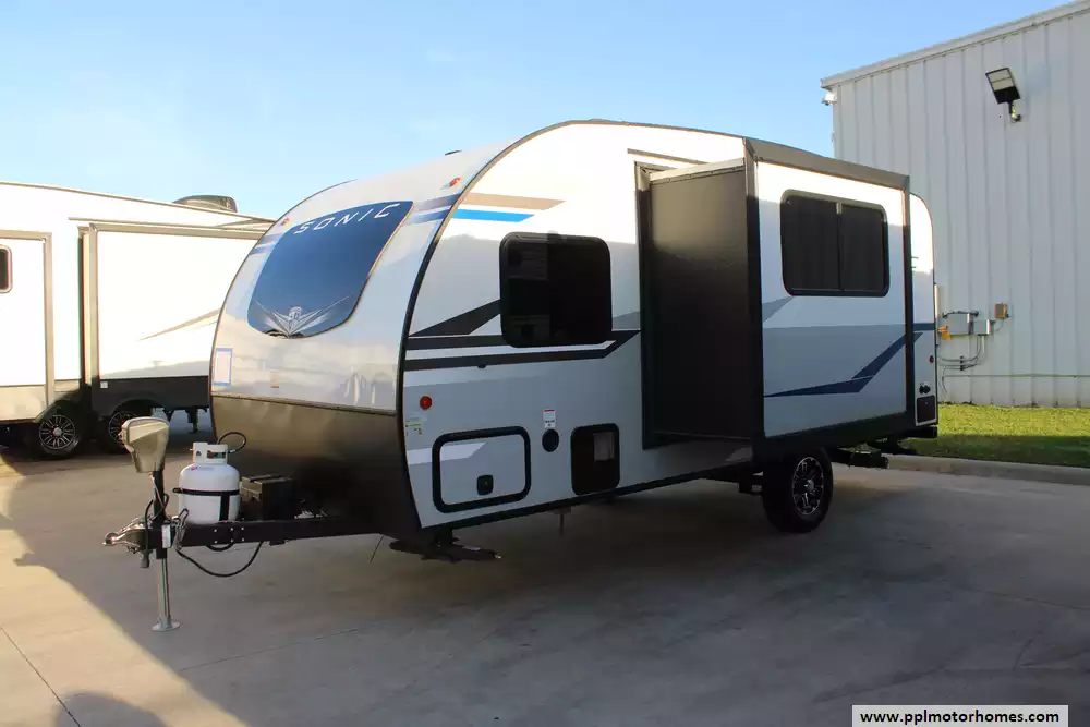 Expand Your Comfort Zone in This 2022 Sonic Lite 169VUD.Features Include...Has an Electric Tongue Jack, 1 Slide-out, 1 Non-Ducted Air Conditioner, Double Door Furrion Refrigerator, Automatic Main Awning, Solar Panel, Outside Speakers, TV, Outdoor Grill, Outdoor Kitchen, Outside Shower, Microwave, 2 Burner Range,and Oven.Storage,Comfort,and Convenience!Elegance With a Spoonful of Attitude!