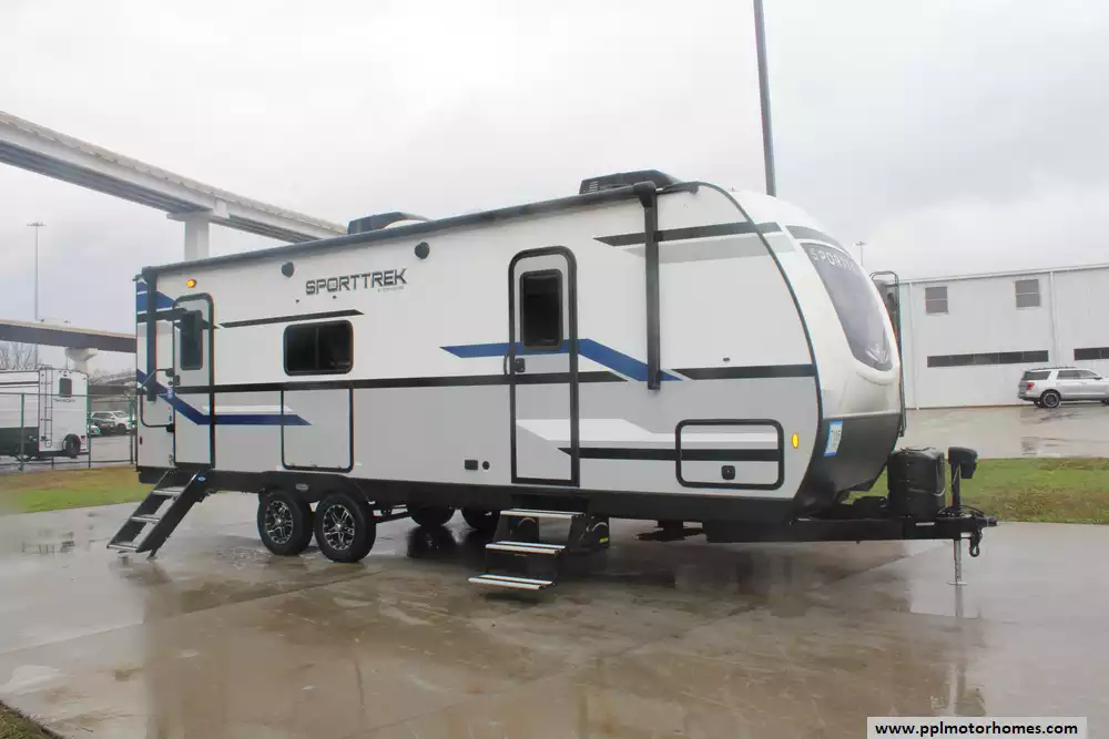 This 2022 Sporttrek 251VRK is designed for comfort and versatility, this model is generally well-suited for both weekend getaways and extended trips.Amenities Include...Has an Electric Tongue Jack, 1 Slide-out, 2 Ducted Air Conditioners, Double Door Residential Furrion Refrigerator, Automatic Main Awning, Outside Speakers, TV,MorRyde Steps,Heat/Massage Theatre Seats, DVD Player, Outdoor Kitchen, Fireplace, Microwave, 3 Burner Range,and Oven.Is a travel trailer that combines a well-thought-out floor plan, modern amenities, and durable construction.