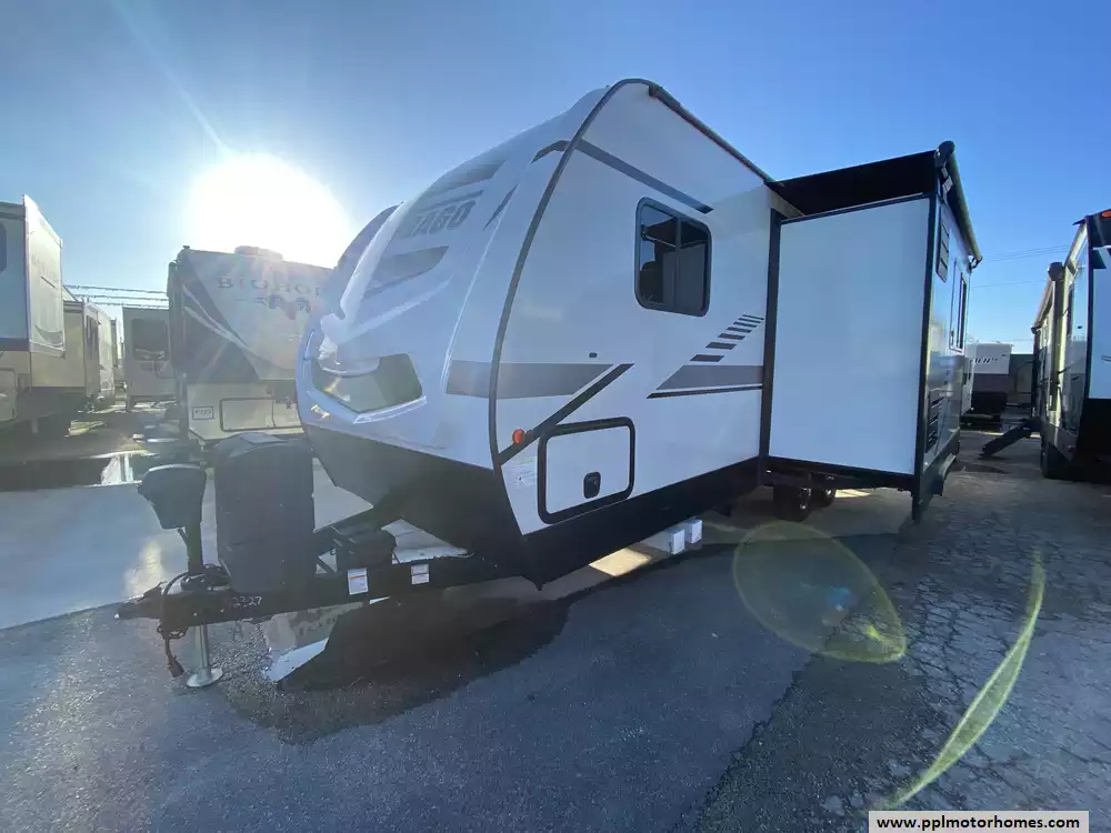 This 2022 Minnie 2327TB has an Electric Tongue Jack, 1 Slide-out, 1 Non-Ducted And 1 Ducted Air Conditioner, Double Door Gas/110v Norcold Refrigerator, Automatic Main Awning And Slide Awning, Heated Tanks, Outside Stereo, TV, Outside Shower, Convection Microwave, 3 Burner Range