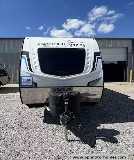 With any Freedom Express Ultra Lite travel trailer by Coachmen you will appreciate quality construction materials, such as vacuum bonded walls with AZDEL composite, a _ gel coated fiberglass cap with an automotive glass windshield, and a heated enclosed underbelly. Each model also features Tufflex PVC roofing, front diamond plate, and E-Z Lube axles for smooth towing. You'll find Carefree flooring indoors, as well as night shades, a dual basin American stonecast sink, and hidden hinge cabinetry. The power tongue jack included with the Ultra Lite will make set-up a breeze and each model includes back-up camera prep and they are Freedom solar ready if you plan to go off-grid. Enjoy lightweight camping with a Freedom Express Ultra Lite travel trailer today.