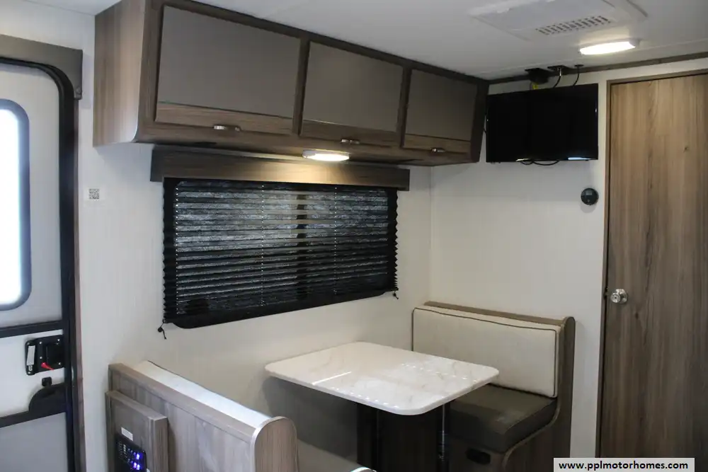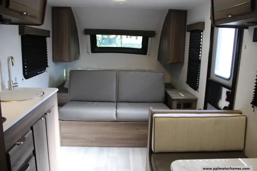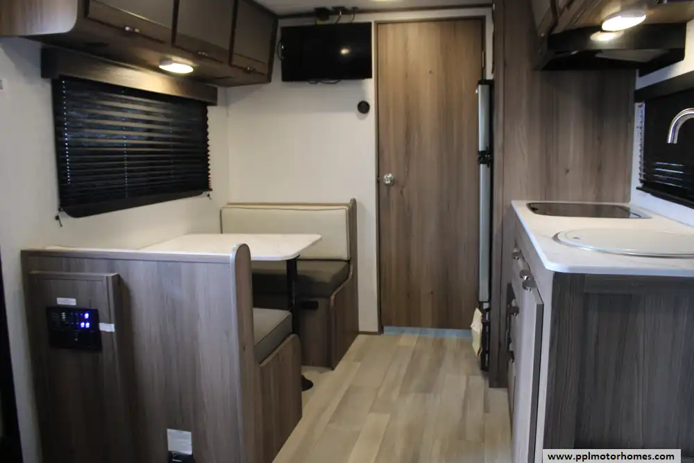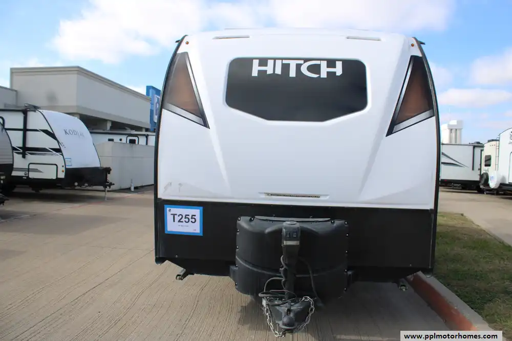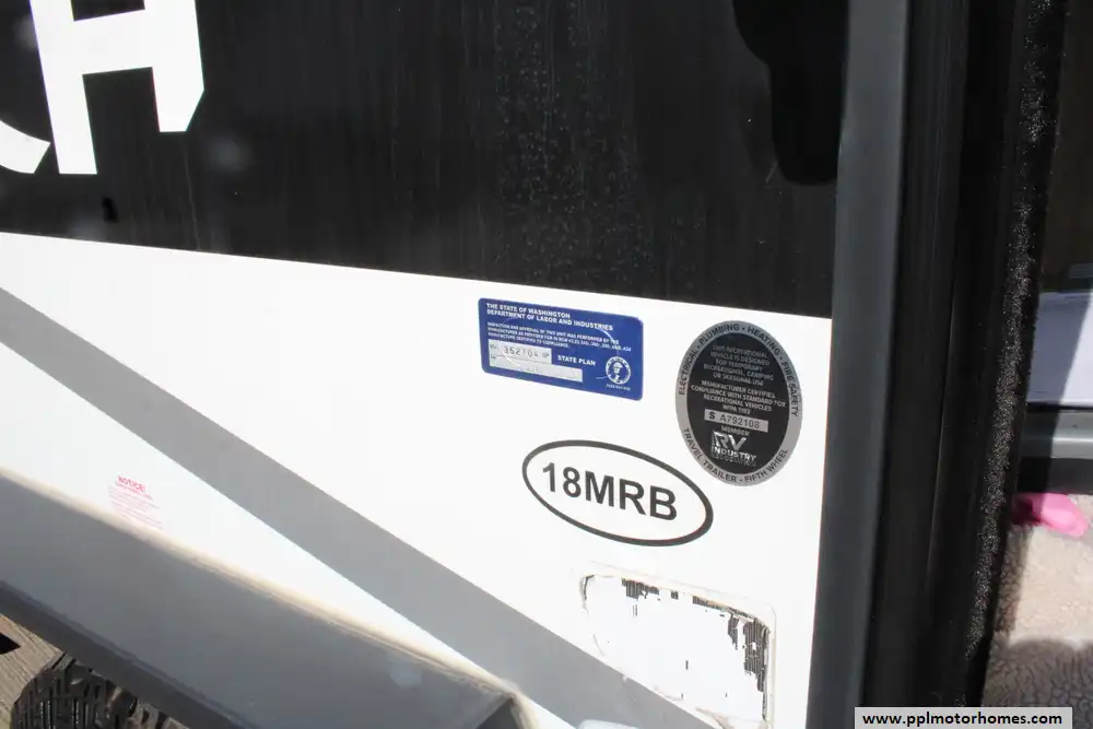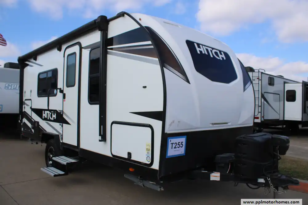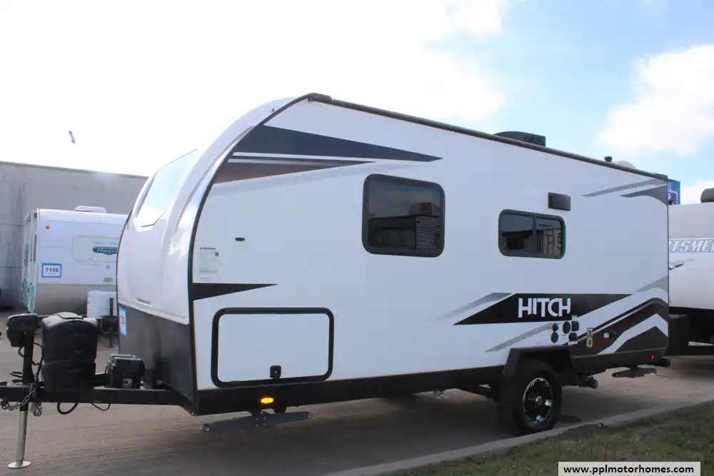 The 2023 Cruiser RV Hitch 18MRB is a lightweight, versatile travel trailer designed for small families or couples seeking comfortable, on-the-road living without excessive size. Built on a rugged fiberglass and aluminum frame, this model measures about 21' 11" long with a GVWR near 4,995 lbs and a dry weight around 3,770 lbs, giving it a healthy cargo capacity for gear and supplies and a tongue weight around 288 lbs. It sleeps 3-to-4 people and features a flexible interior centered around a queen-sized Murphy bed that maximizes living space, solid surface kitchen counters with a two-burner cooktop, European-style cabinetry, seamless marine-grade flooring, and a full bathroom with 30 gal black/gray tanks and a 46 gal fresh water tank. Outdoor amenities include a 14' power awning, while standard systems like 15,000 BTU A/C, European interior finishes, and LP tanks make it comfortable for extended travel. The Hitch 18MRB strikes a balance of lightweight towing, practical layout, and essential comforts for weekend trips or longer adventures.