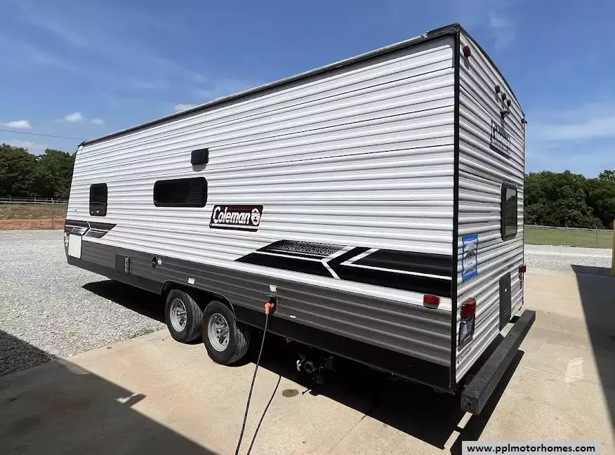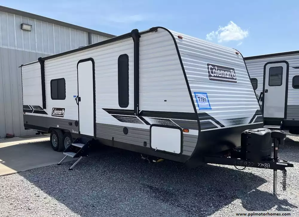 This 2023 Coleman 274BH has an Electric Tongue Jack, Double Door 110v Everchill Refrigerator, Automatic Main Awning And Window/Door Awnings, Outside Shower, Microwave, 3 Burner Range, Oven