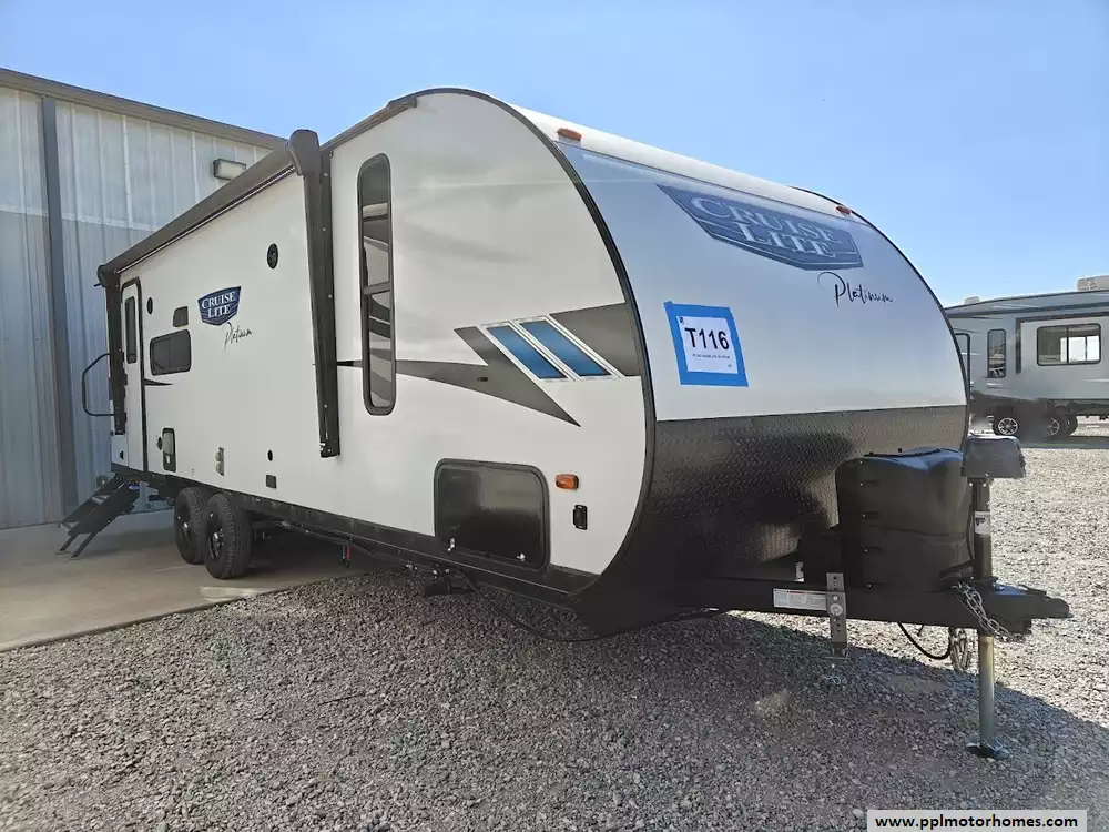 This 2023 Cruise Lite Platinum 24RLXLX has an Electric Tongue Jack, 1 Slide-out, 1 Ducted Air Conditioner, Double Door 12v Magic Chef Refrigerator, Automatic Main Awning And Window/Door Awnings, Solar Panel, Outside Entertainment System, Fireplace, Microwave, 3 Burner Range, Oven