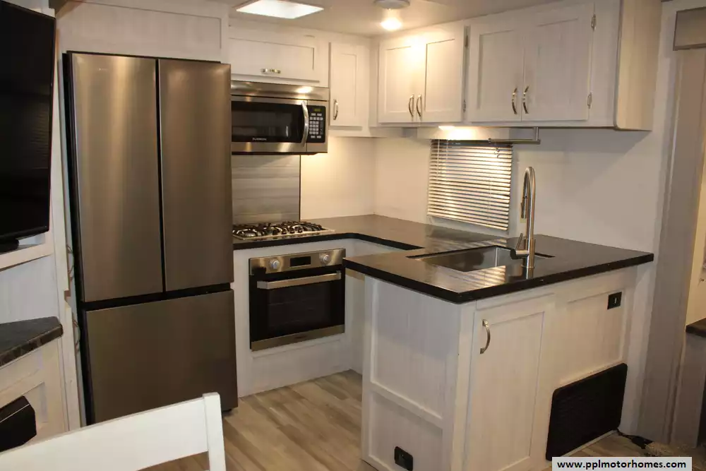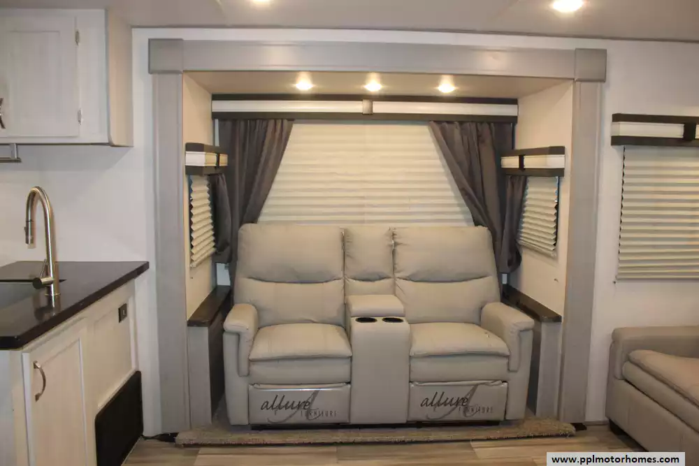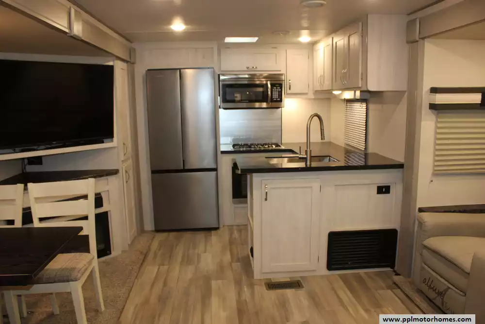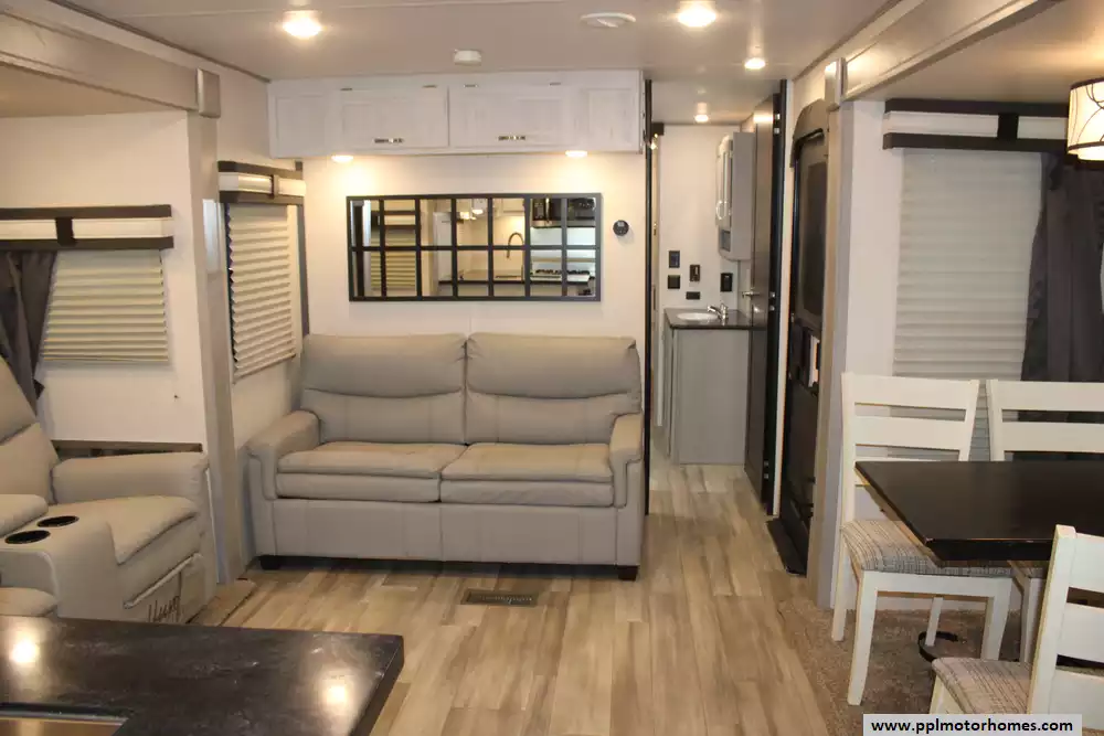 The 2023 Lacrosse Luxury Lite 3411RK defines upscale travel, blending residential-style comfort with the durability of fiberglass construction and a reliable rubber roof. This 38-foot travel trailer is celebrated for its expansive rear-kitchen layout, which provides an open-concept living area and chef-inspired prep space rarely seen in towable units. With three slide-outs creating a massive interior footprint, the Lacrosse has earned a reputation for providing a sophisticated, home-like atmosphere with high-end finishes that cater to both weekend warriors and full-time travelers alike.