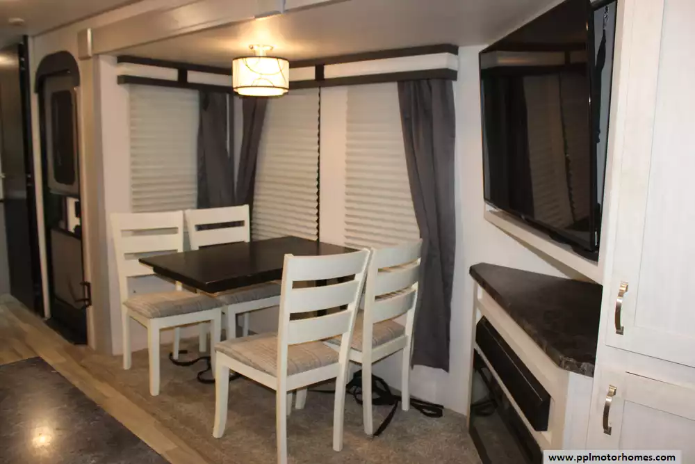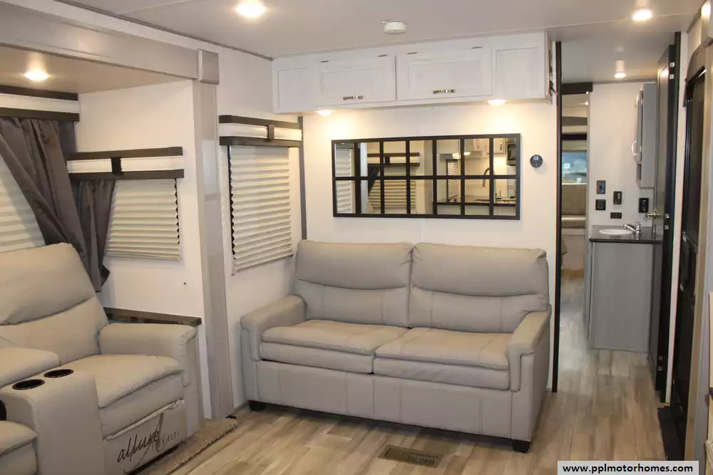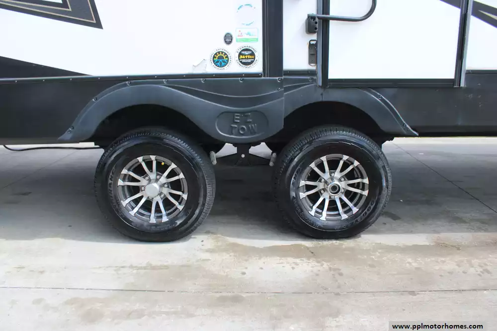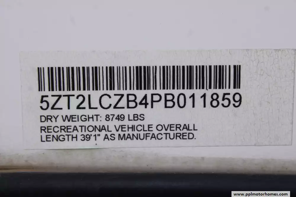 Specs: Length: 39.1 ft., Height: 11.1 ft., Width: 8 ft., Payload Capacity: 2,282 lbs., Total Fresh Water Tank Capacity: 42 gal., Total Grey Tank Capacity: 60 gal., Total Black Water Tank Capacity: 30 gal.
