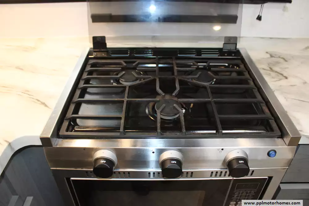 Specs: Length: 30.08 ft., Width: 8 ft., Height: 11.17 ft., Interior Height: 6.5 ft., Payload Capacity: 3.096 lbs., Total Fresh Water Tank Capacity: 54 gal., Total Gray Water Tank Capacity: 80 gal., Total Black Water Tank Capacity: 40 gal., Total Number of Propane Tanks: 2, Total Propane Tank Capacity: 40 lbs.