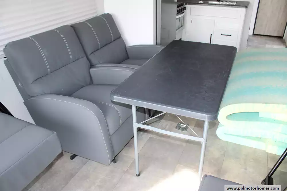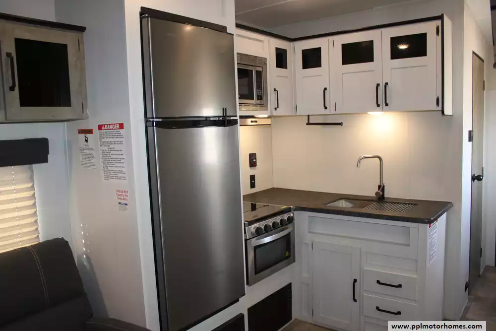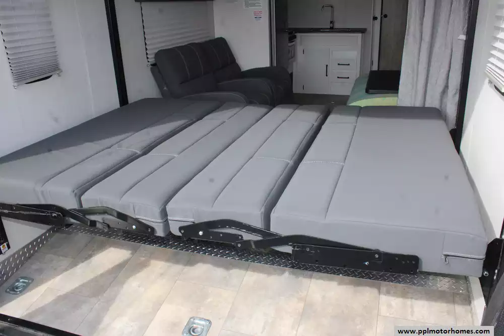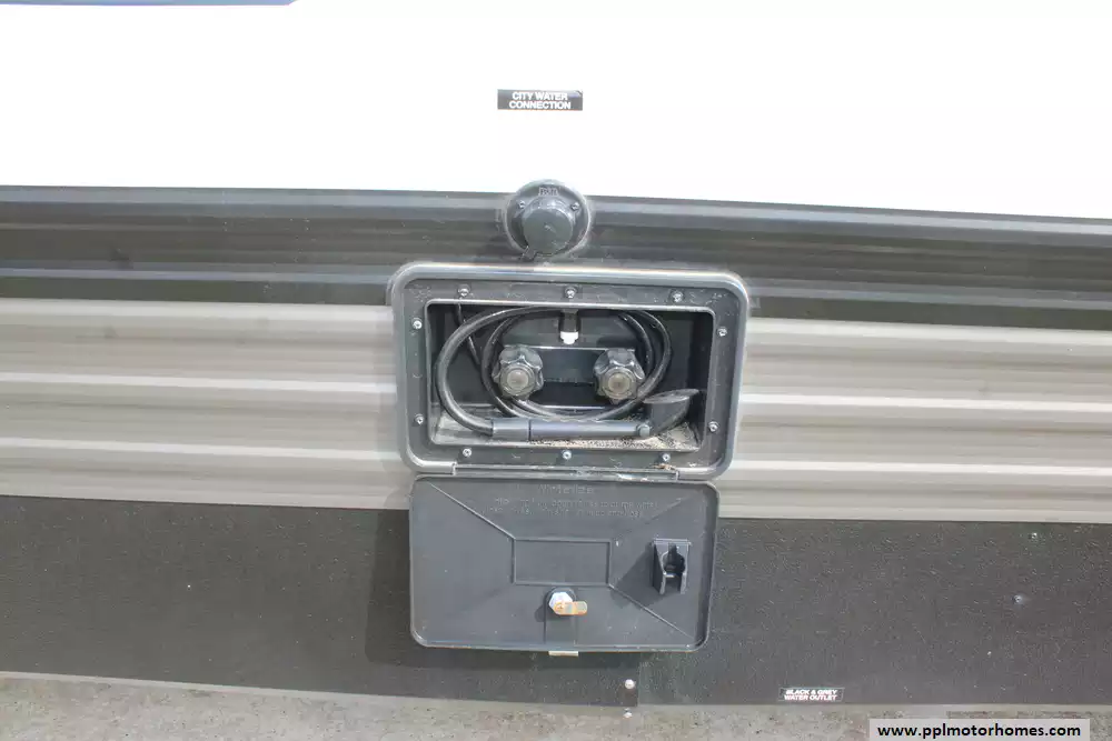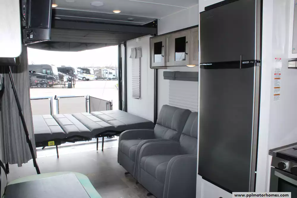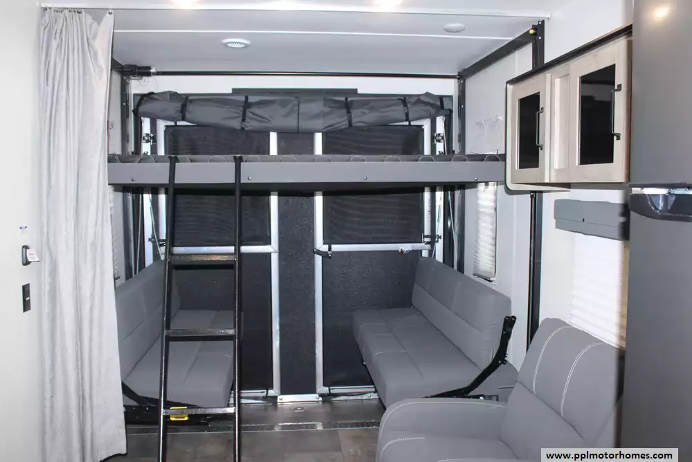 Specs: Length: 34.08 ft., Width: 8 ft., Height: 12.16 ft., Payload Capacity: 2,700 lbs., Total Fresh Water Tank Capacity: 43 gal., Total Gray Water Tank Capacity: 35 gal., Total Black Water Tank Capacity: 35 gal., Total Propane Tank Capacity: 40 lbs.