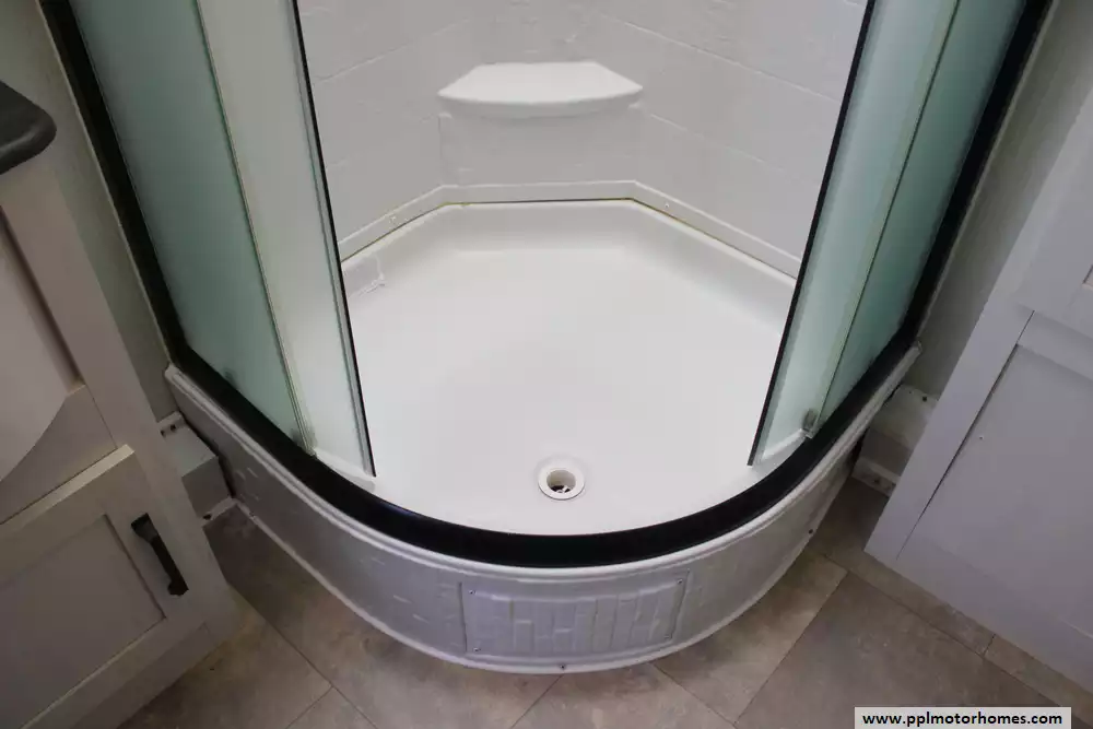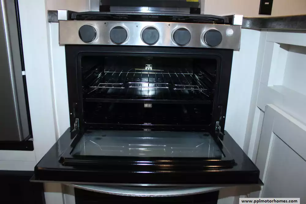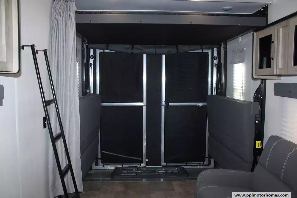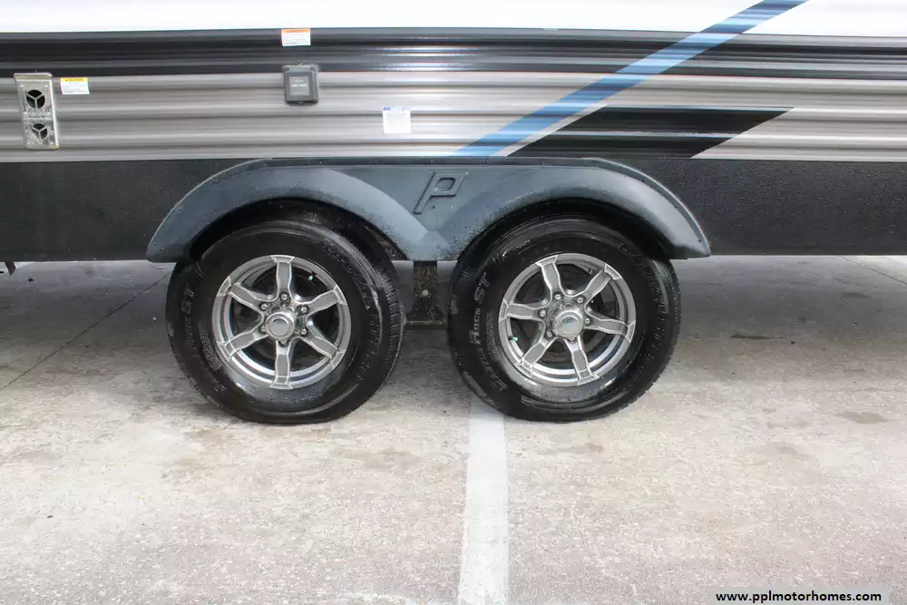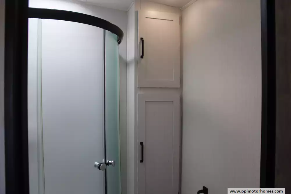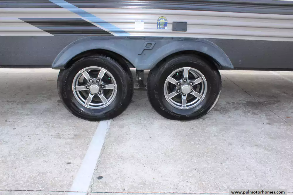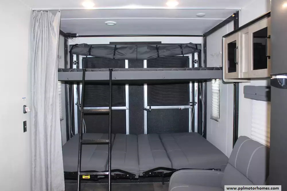 Specs: Length: 34.08 ft., Width: 8 ft., Height: 12.16 ft., Payload Capacity: 2,700 lbs., Total Fresh Water Tank Capacity: 43 gal., Total Gray Water Tank Capacity: 35 gal., Total Black Water Tank Capacity: 35 gal., Total Propane Tank Capacity: 40 lbs.