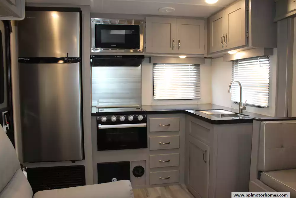 Specs: Length: 28.92 ft., Width: 8 ft., Height: 10.58 ft., Payload Capacity: 2,212 lbs., Total Fresh Water Tank Capacity: 42 gal., Total Gray Water Tank Capacity: 68 gal., Total Black Water Tank Capacity: 34 gal., Total Number of Propane Tanks: 2, Total Propane Tank Capacity: 40 lbs.