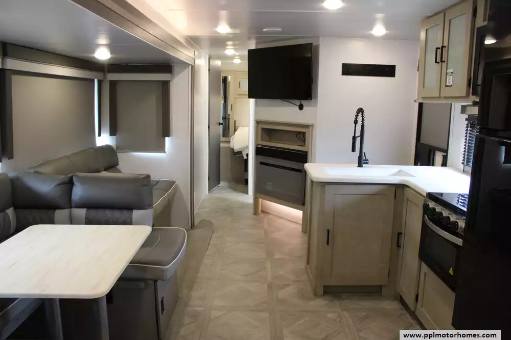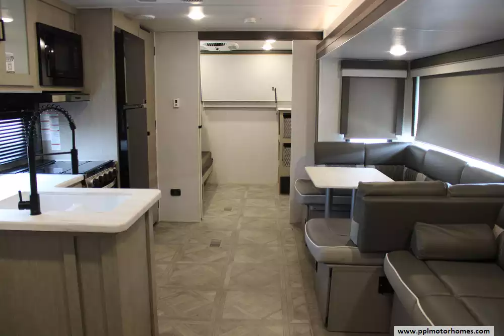 (Floor plan is NOT drawn to scale. Length of vehicle is approximate. Buyer is responsible for verifying actual length. PPL Motor Homes compiled this list of features, specifications, equipment and options as a guide. No representation or warranties, either express or implied, are made as to the accuracy of the information herein. Please verify for yourself all items listed before purchase.)