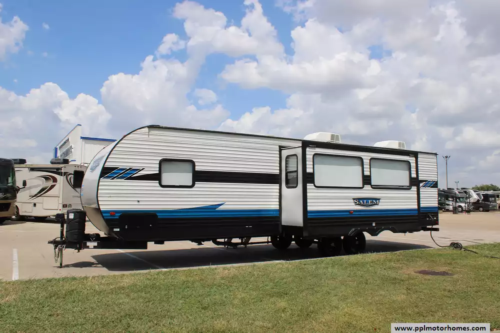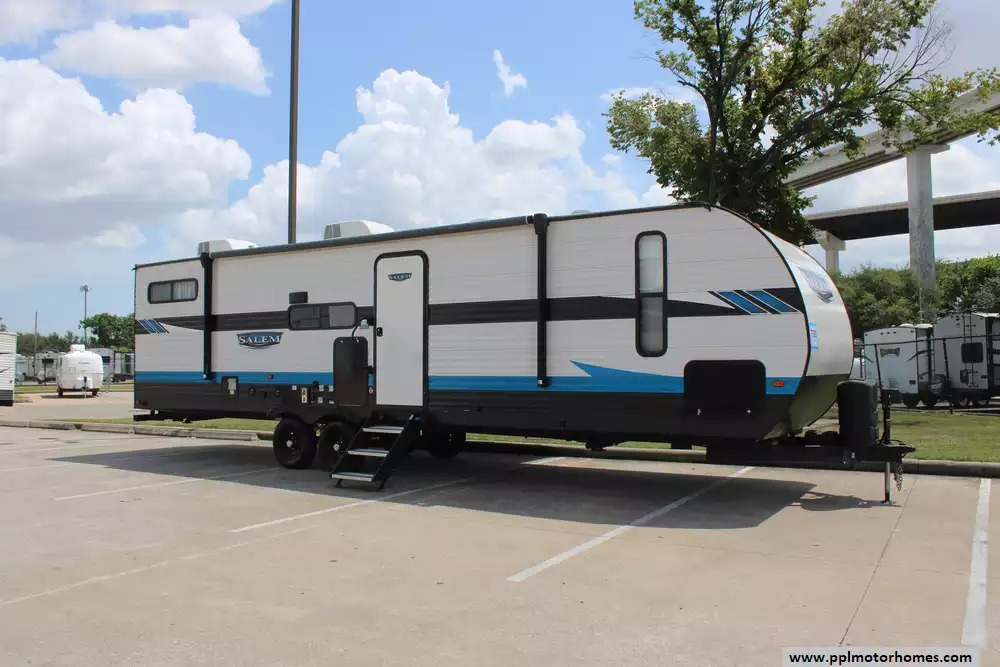 This 2023 Salem 29VBUD offers a thoughtfully arranged and family-friendly layout, complete with modern features and solid capacity on paper. Features Include...1 Slide-out, 1 Non-Ducted And 1 Ducted Air Conditioner, Double Door 12v Everchill Refrigerator, Automatic Main Awning, Outside Speakers, TV, Outdoor Kitchen, Fireplace, Microwave, 3 Burner Range, and Oven.