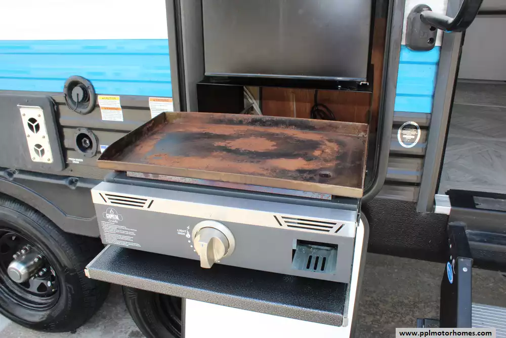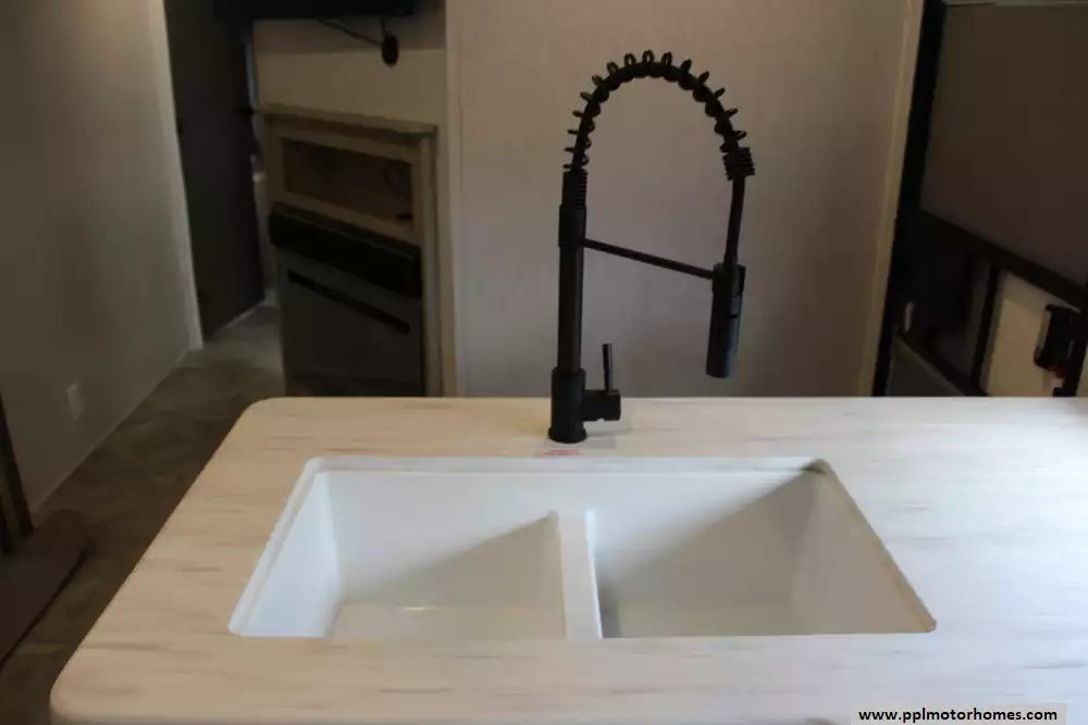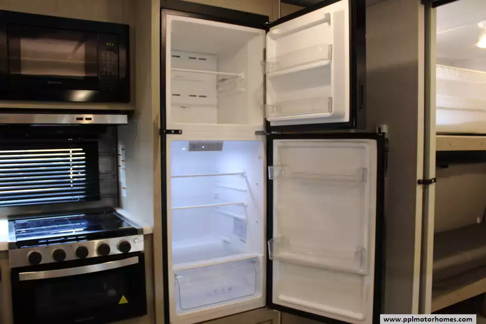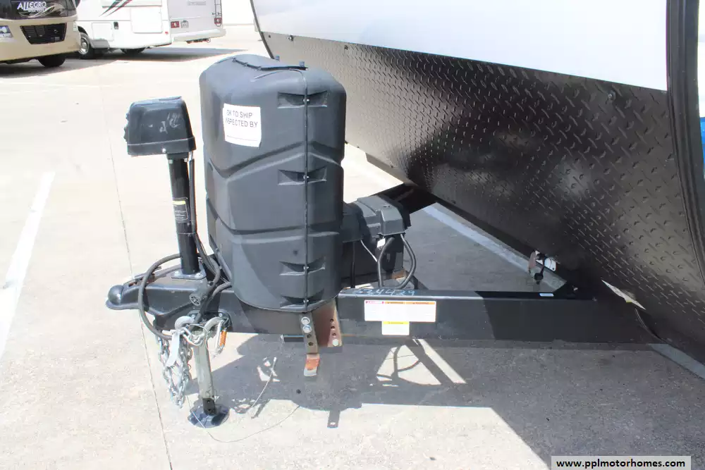Specs: Length: 33.42 ft., Width: 8 ft., Height: 10.75 ft., Interior Height: 6.75 ft. Payload Capacity: 1,502 lbs., Total Fresh Water Tank Capacity: 49 gal., Total Gray Water Tank Capacity: 33 gal., Total Black Water Tank Capacity: 33 gal., Number of Propane Tanks: 2, Total Propane Tank Capacity: 40 lbs.