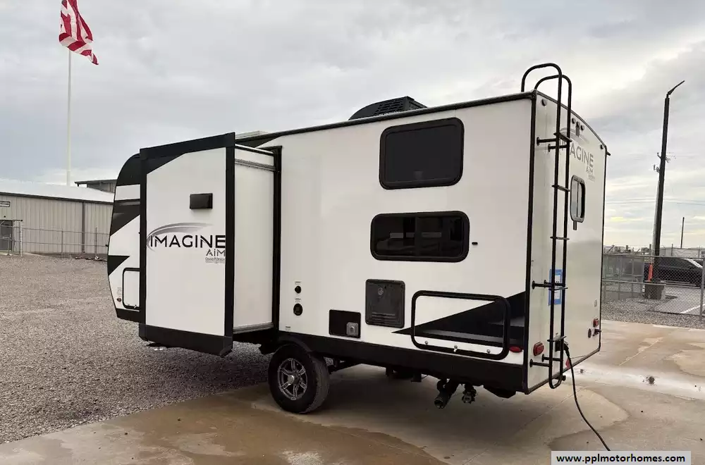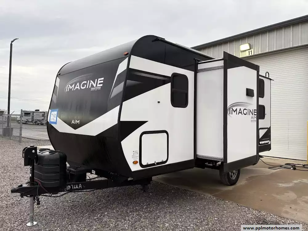 This 2023 Imagine Aim 18BH has an Electric Tongue Jack, 1 Slide-out, 1 Non-Ducted Air Conditioner, 12v Norcold Refrigerator, Automatic Main Awning, Washer/Dryer, TV, Outdoor Grill, Outside Shower, Microwave