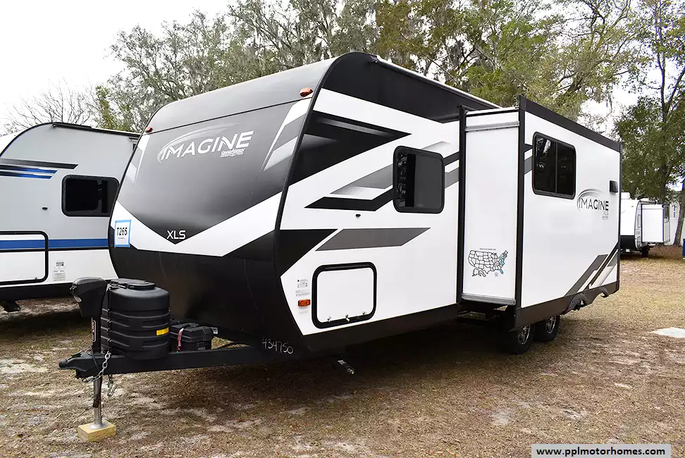 This 2023 Imagine Xls 22MLE has an Electric Tongue Jack, 1 Slide-out, 1 Ducted Air Conditioner, Double Door 110v/12v Furrion Refrigerator, Automatic Main Awning, Solar Panel, Heated Tanks, Satellite Receiver, Outside Speakers, TV, Outside Shower, Microwave, 3 Burner Range, Oven