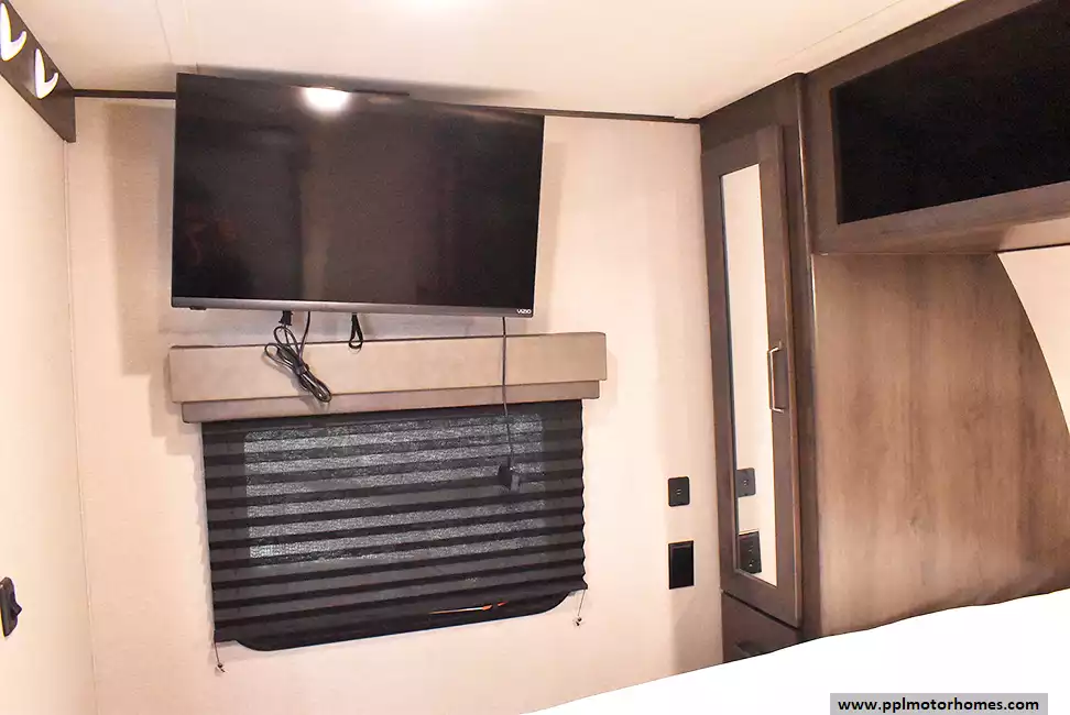 This 2023 Transcend Explorer 265BH has an Electric Tongue Jack, 1 Slide-out, 1 Ducted Air Conditioner, Double Door 12v Furrion Refrigerator, Automatic Main Awning, Solar Panel, Outside Speakers, TV, Outside Shower, Microwave, 3 Burner Range, Oven